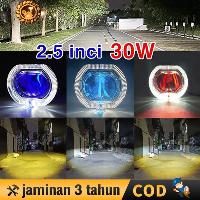 Lampu Depan Ala Ala Biled Mini 2.5 Inch D2 D3 High Low Projie Biled Mini Universal Waterproof Dengan Shroud + Devil Laser Cut Off High Low Full Aluminium