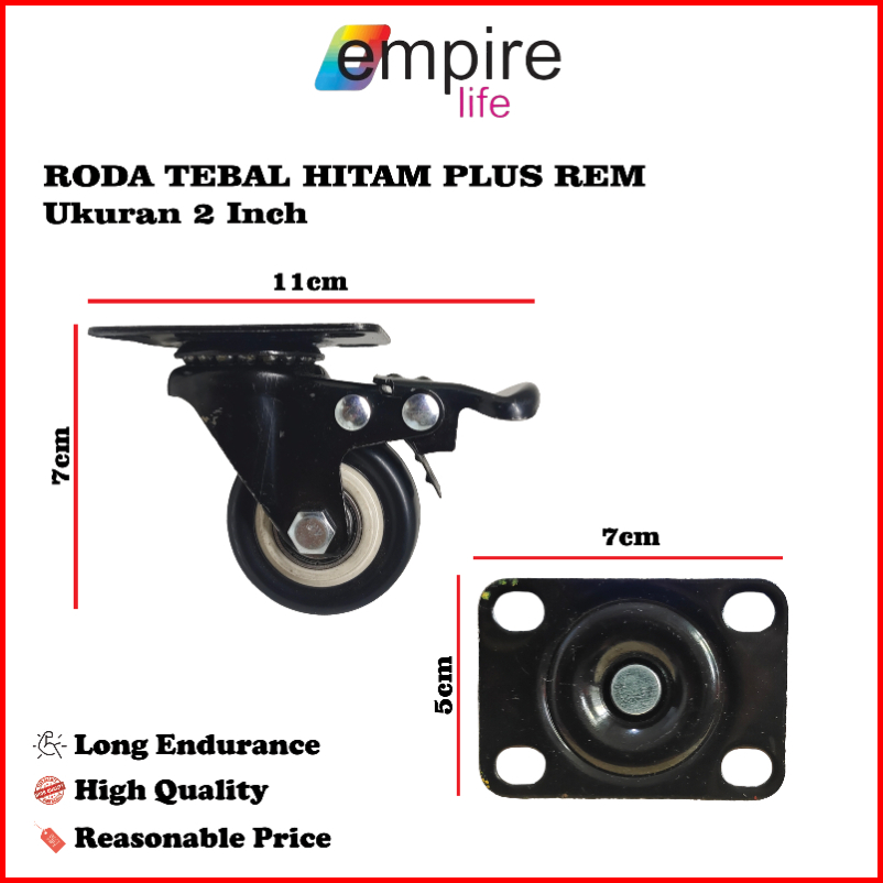 Roda Caster Hidup Plus Rem Hitam Tebal 2 Inch