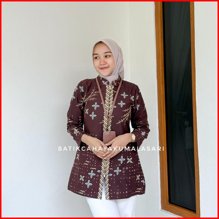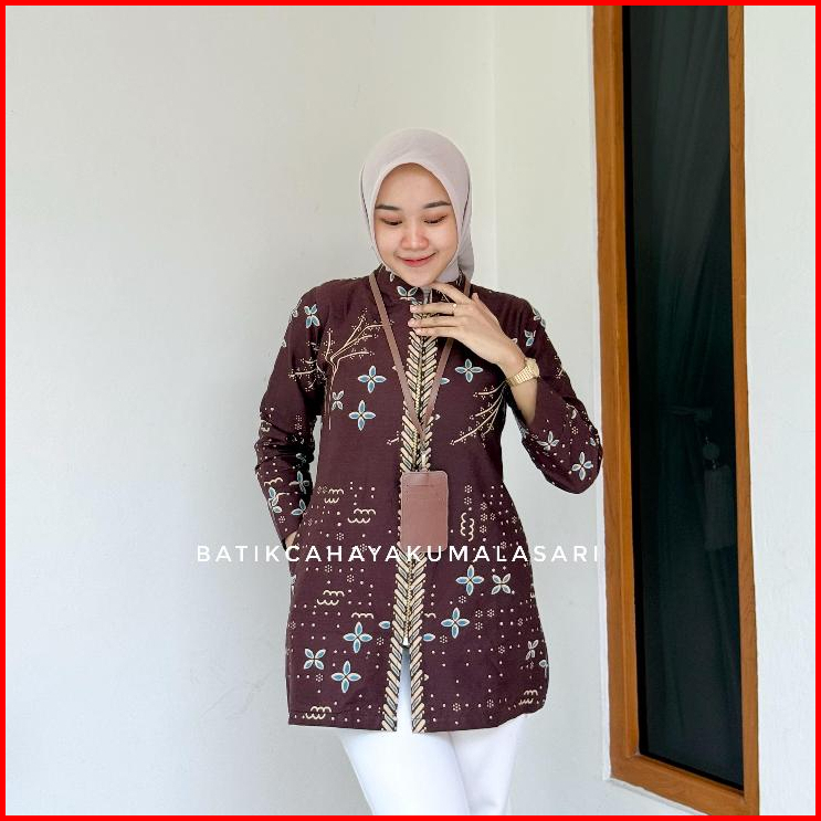 Tunik Pendek Batik Wanita Lapis Trickot Motif Arruna Mahogany - Atasan Kerja Wanita Bahan Katun Solo