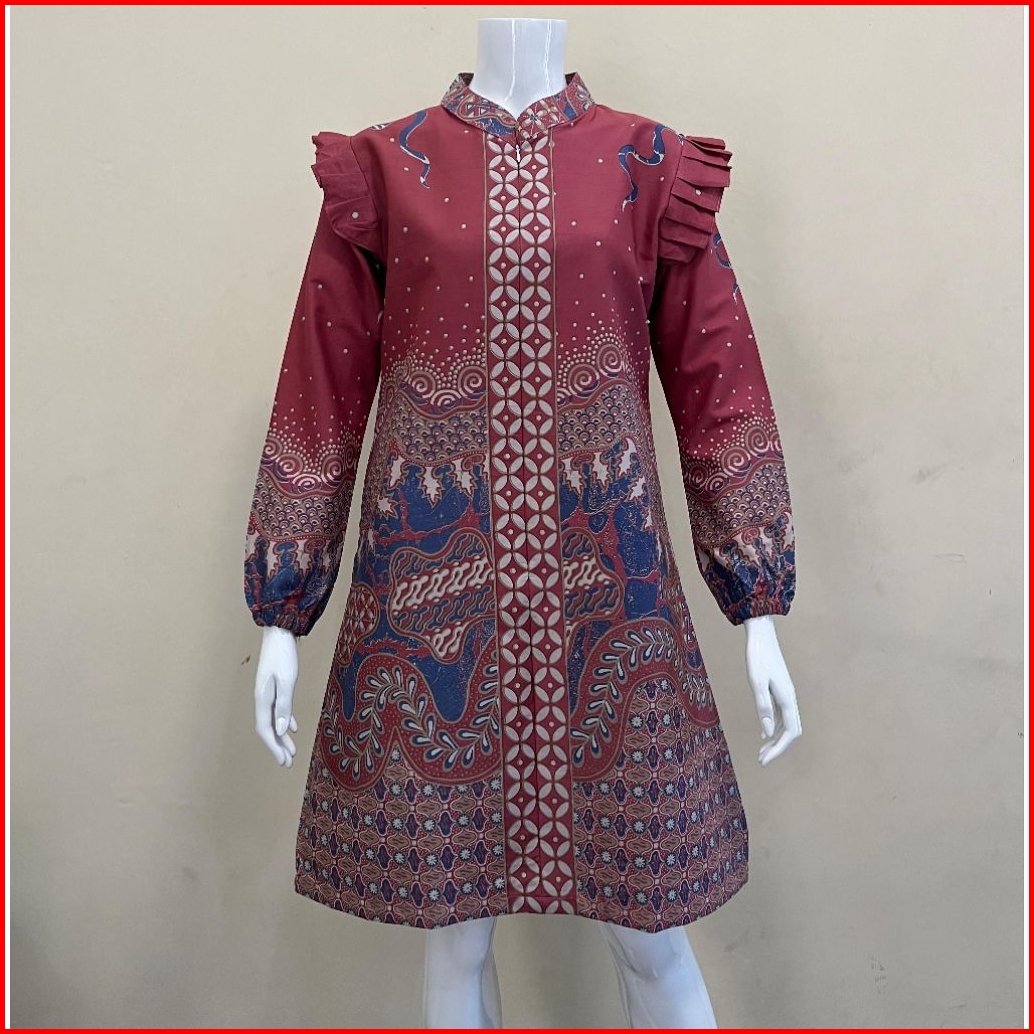 12 Motif Tunik Batik Full Furing Trikot Dress Blouse Gamis Wanita Katun Premium Atasan Batik Batik Solo Batik Sragen Bat