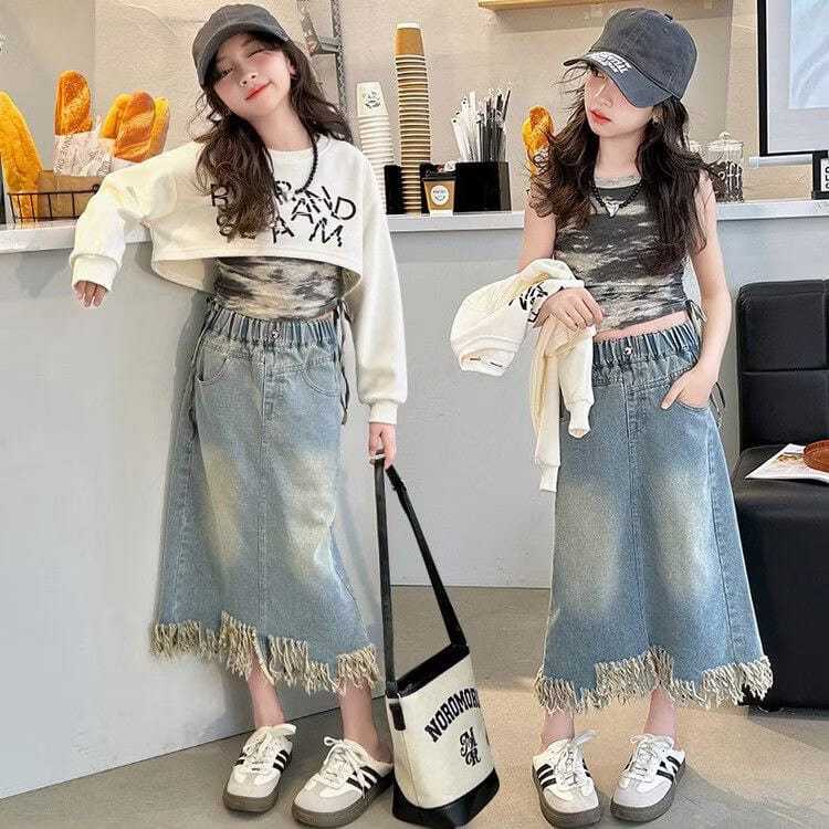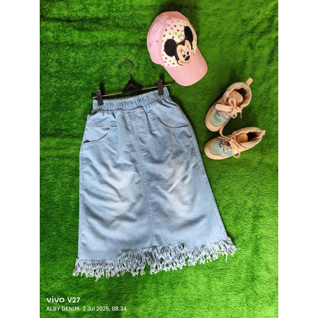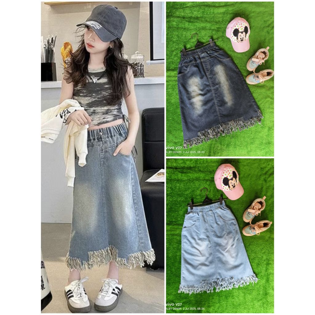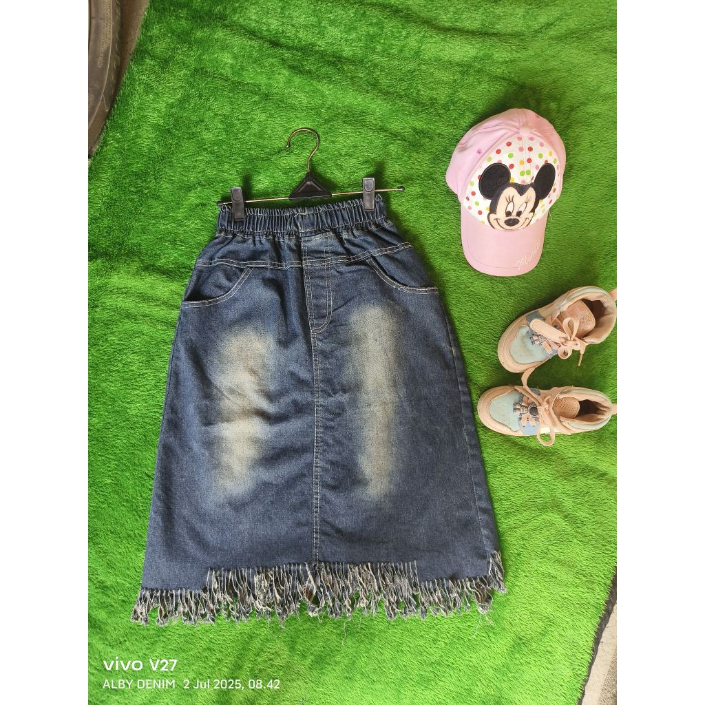 Rok Jeans Anak Rok Jeans Rombai Midi Anak Korean Style Denim Stretch