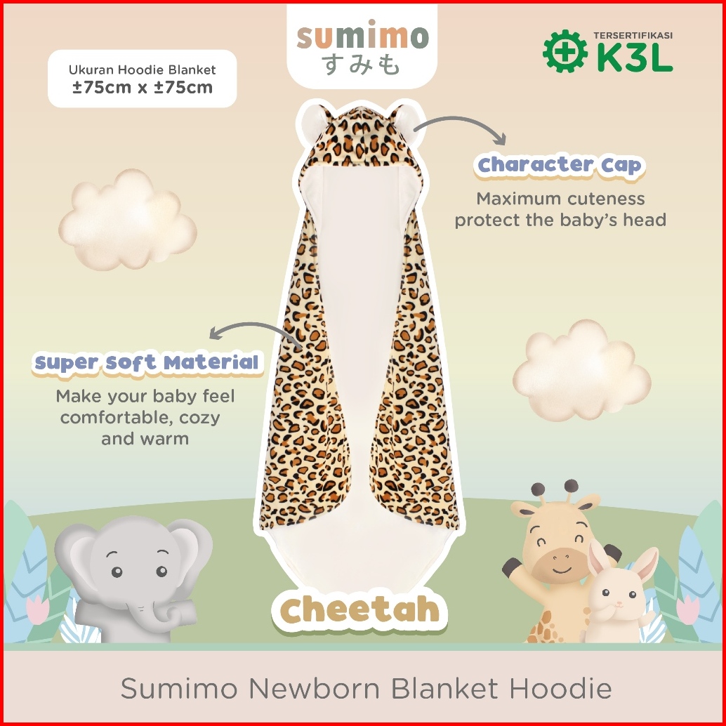 Sumimo Blanket Hoodie Baby Selimut Topi Bayi Karakter Lucu Super Soft Cheetah