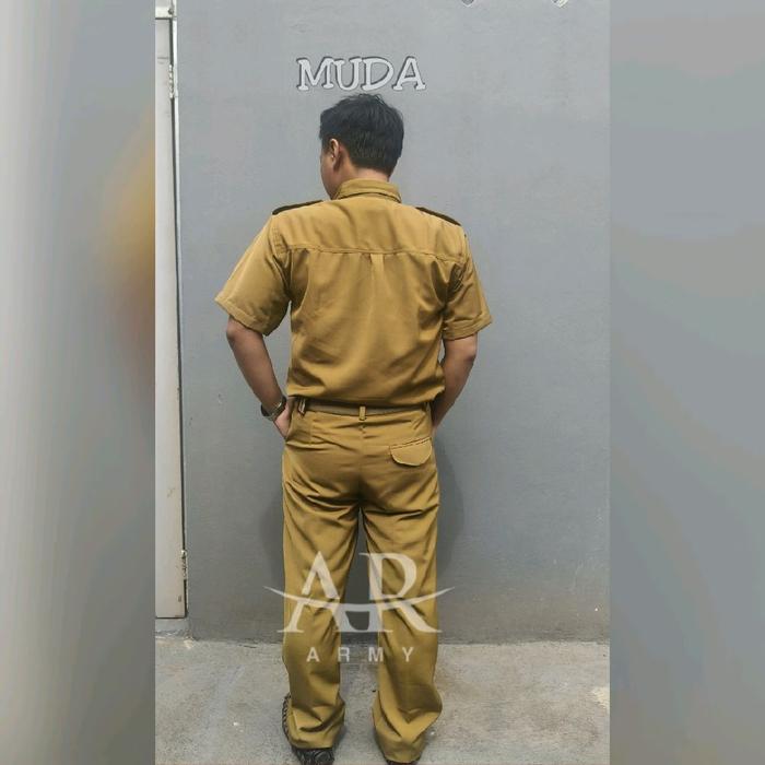 SERAGAM PNS ASN PEMDA PEMKOT GURU PRIA KHAKI MUDA SEDANG TUA BAJU DAN CELANA PANJANG KATUN LEMBUT SETELAN KERJA LENGAN PENDEK - KHAKI MUDA, S