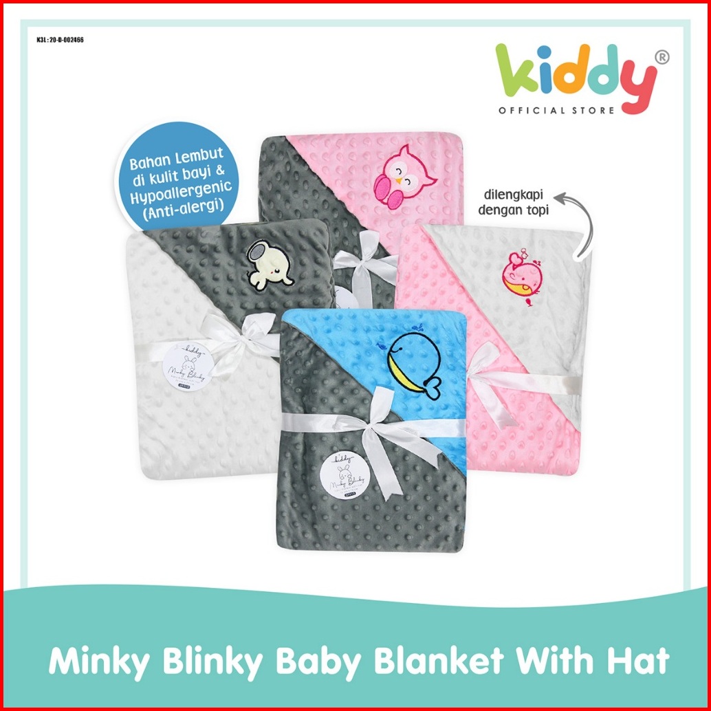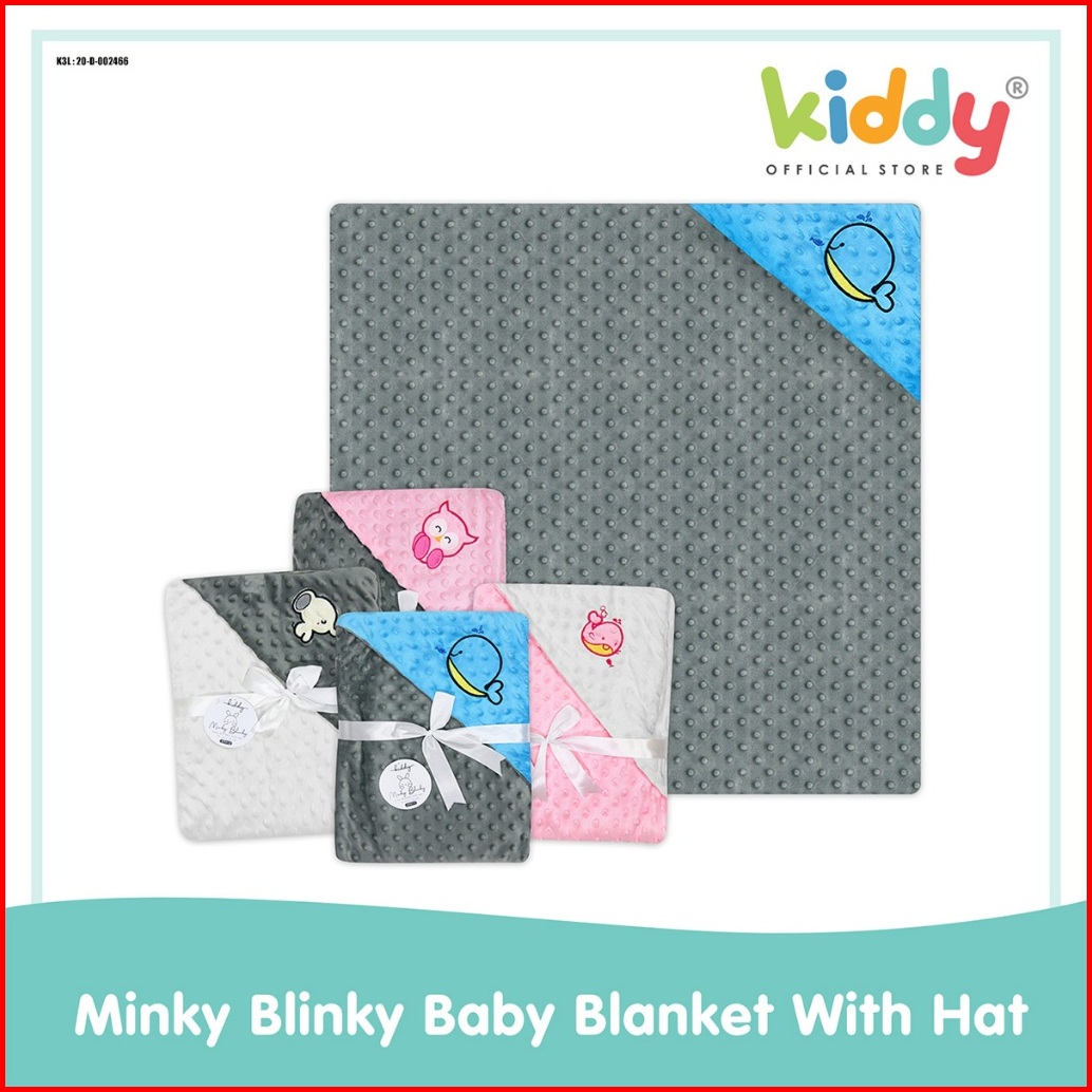 Kiddy Minky Blinky Baby Blanket With Hat Selimut Bayi Dengan Topi