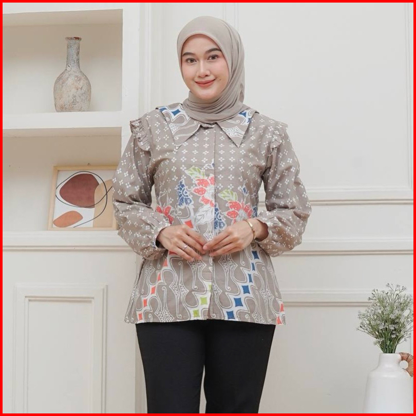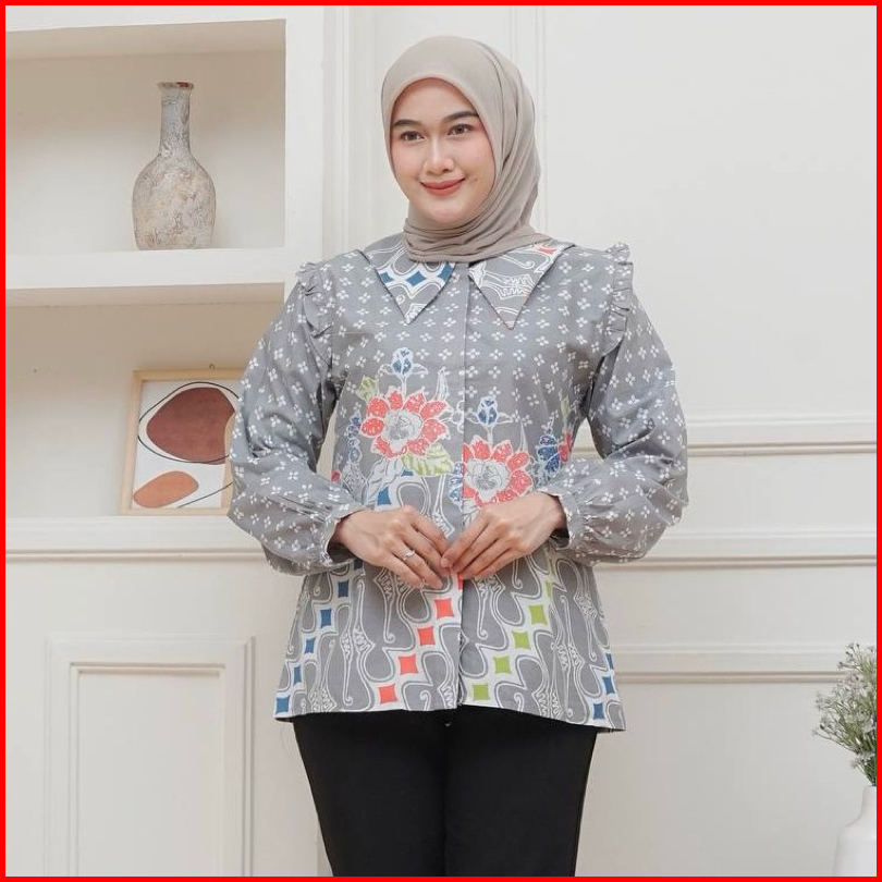 Batik Kantoran Id Atasan Batik Wanita Motif Lily Series Pekalongan Size M L Xl Xxl
