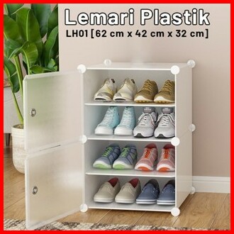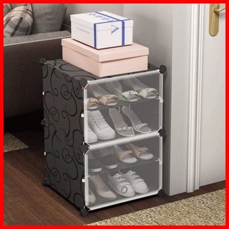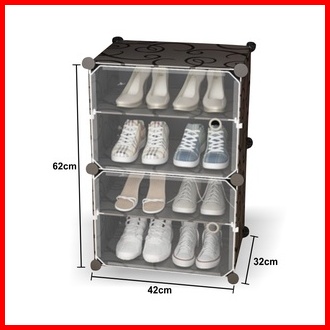Rak Sepatu Portable 2 Kolom 4 Kotak Sepatu Tebal Tertutup Anti Debu Shoe Rack Serbaguna Minimalis - Orange Officialshop