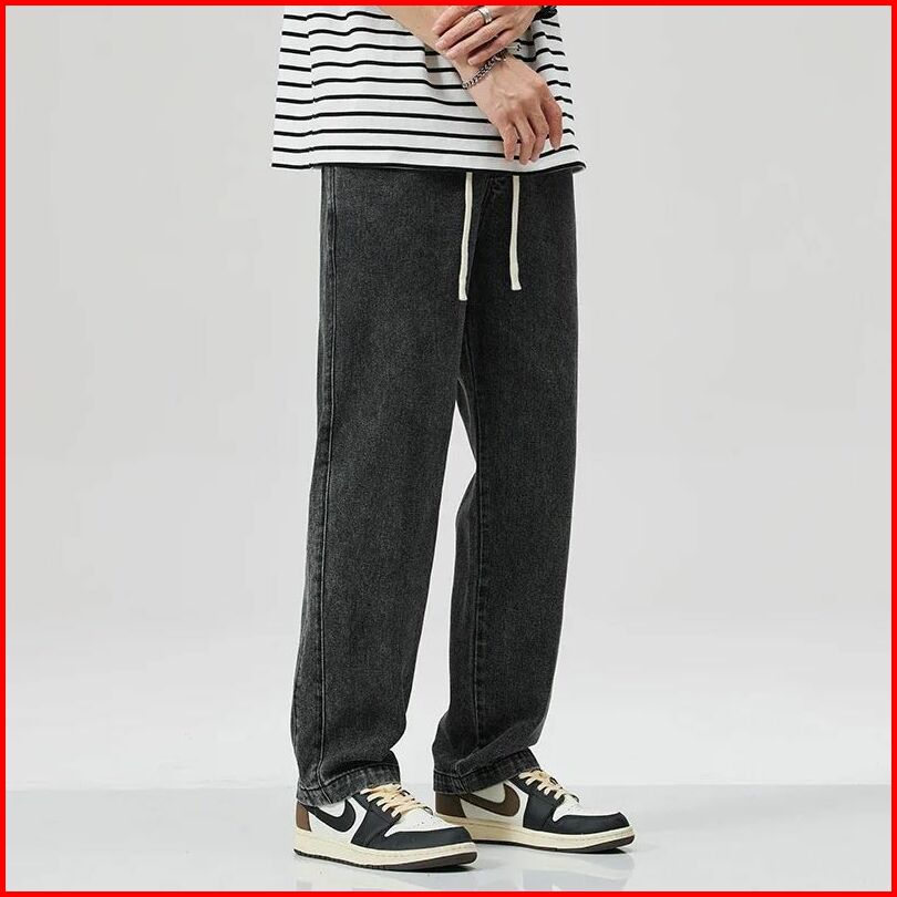 Celana Jeans Pria Panjang Gombrang Pinggang Karet - Celana Jeans Korea Style Original Loose Straight - Celana Jeans Over