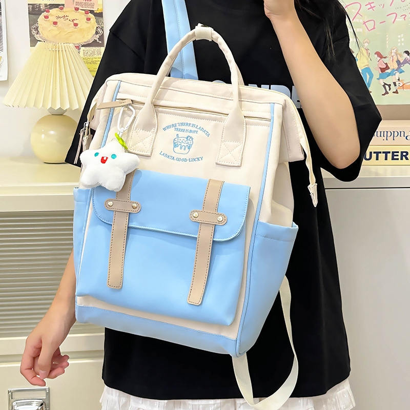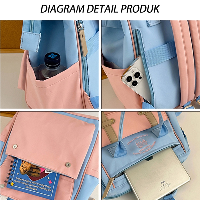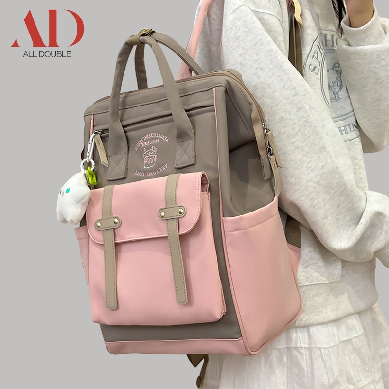 All Double Ransel Colorblock Tas Sekolah Wanita Kapasitas Besar Tas Laptop 16 Inch Tahan Air Murah Gratis Ongkir