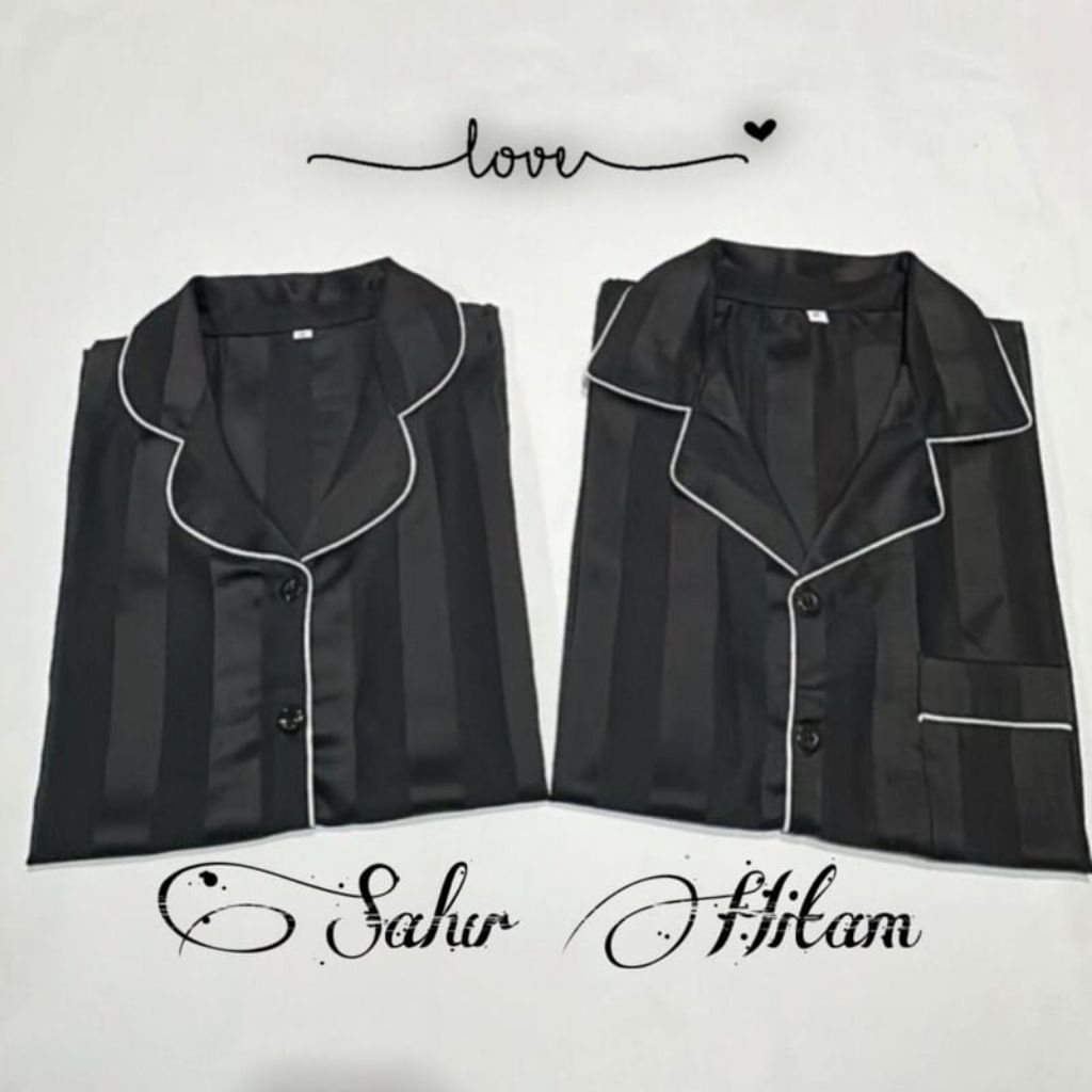 baju tidur piyama couple hp salur satin sutra Lengan pendek celana pendek
