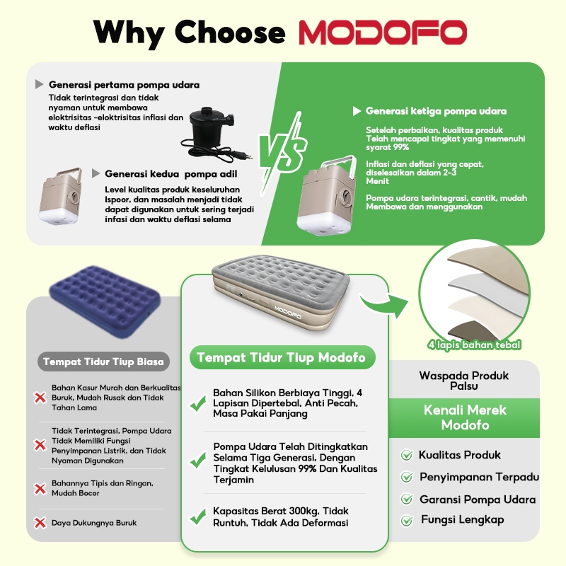 MODOFO Outdoor Biru Matras Kasur Pompa Matras Tidur Kasur Angin Bisa Tahan Inflatable Bed Tiup Murah Gratis Ongkir
