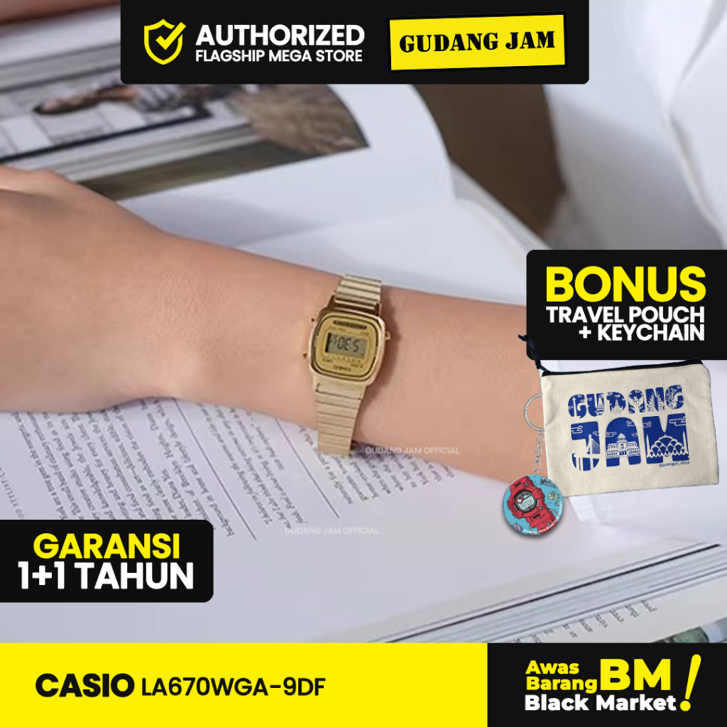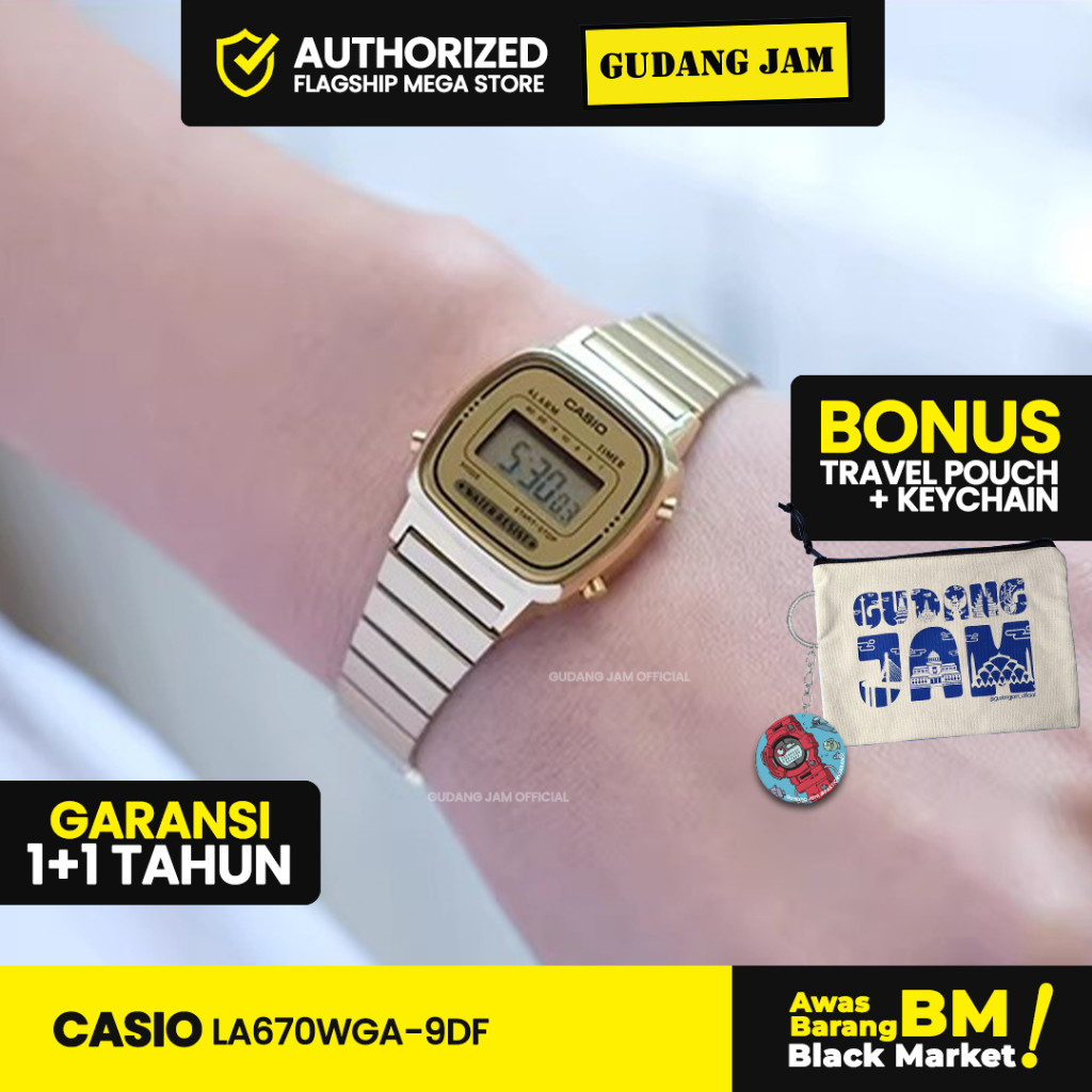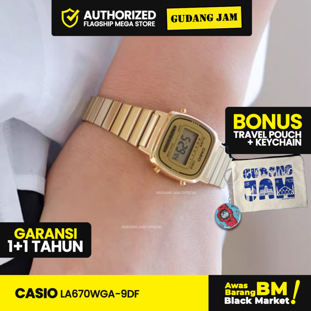 Jam Tangan Wanita Casio LA670WGA-9DF Digital Stainless Rantai Gold