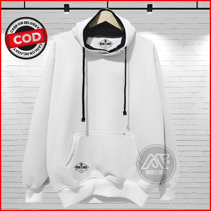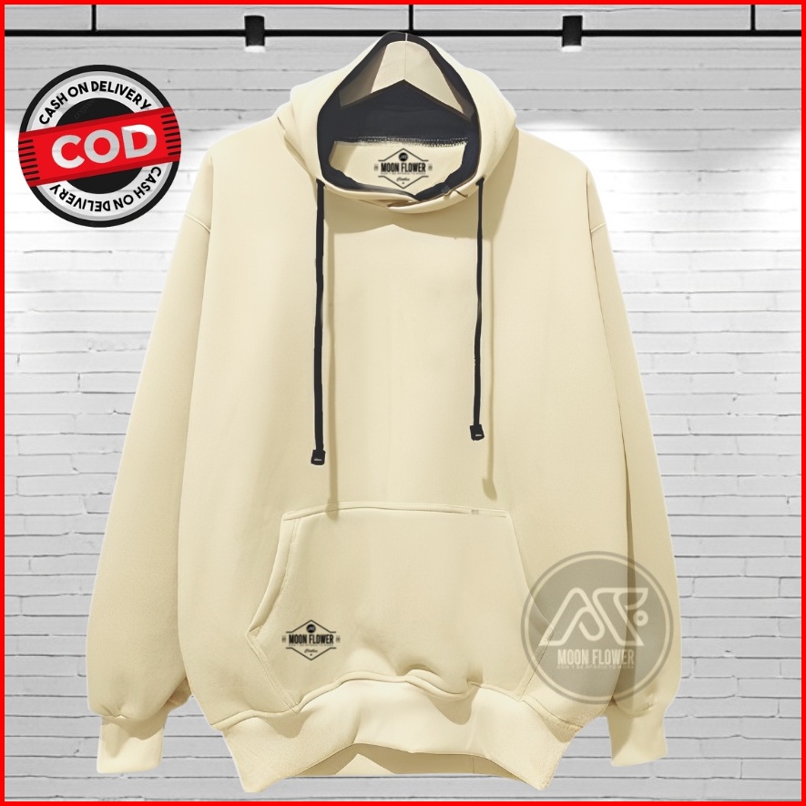Sweater Polos Pria Distro Warna Cream Hodie Cowok Aesthetic Hoodie Oversize Polos Brand Moon Flower Hudi Sweter Terbaru
