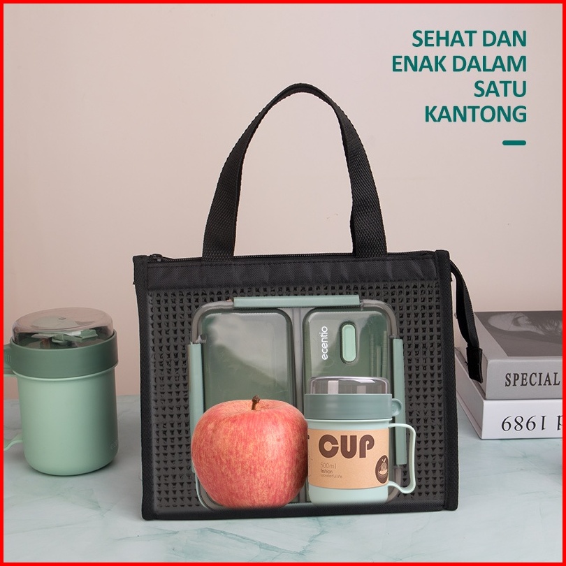 Ecentio Tas Bekal Pola Oxford Cloth Lunch Bag Tas Bekal Jumbo Anti Air Makanan Bento Elegan Aluminium Foil Lunch Cooler