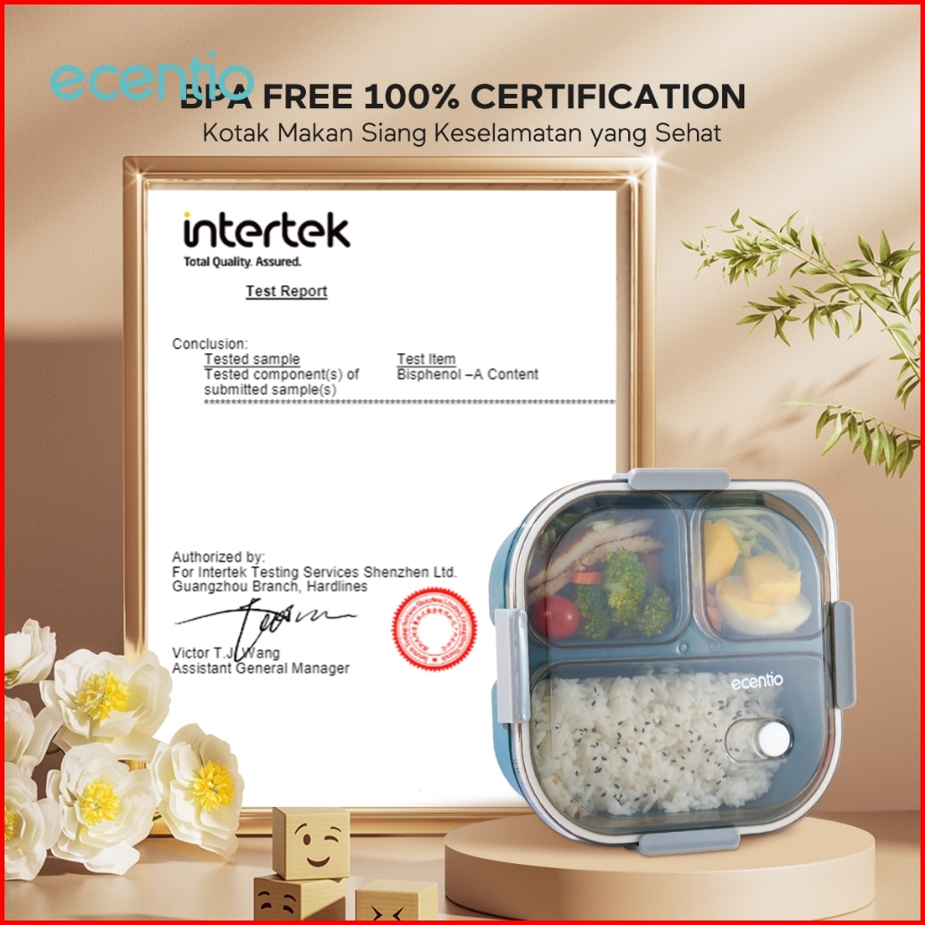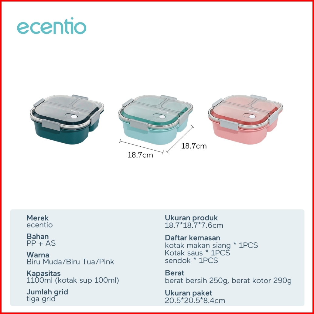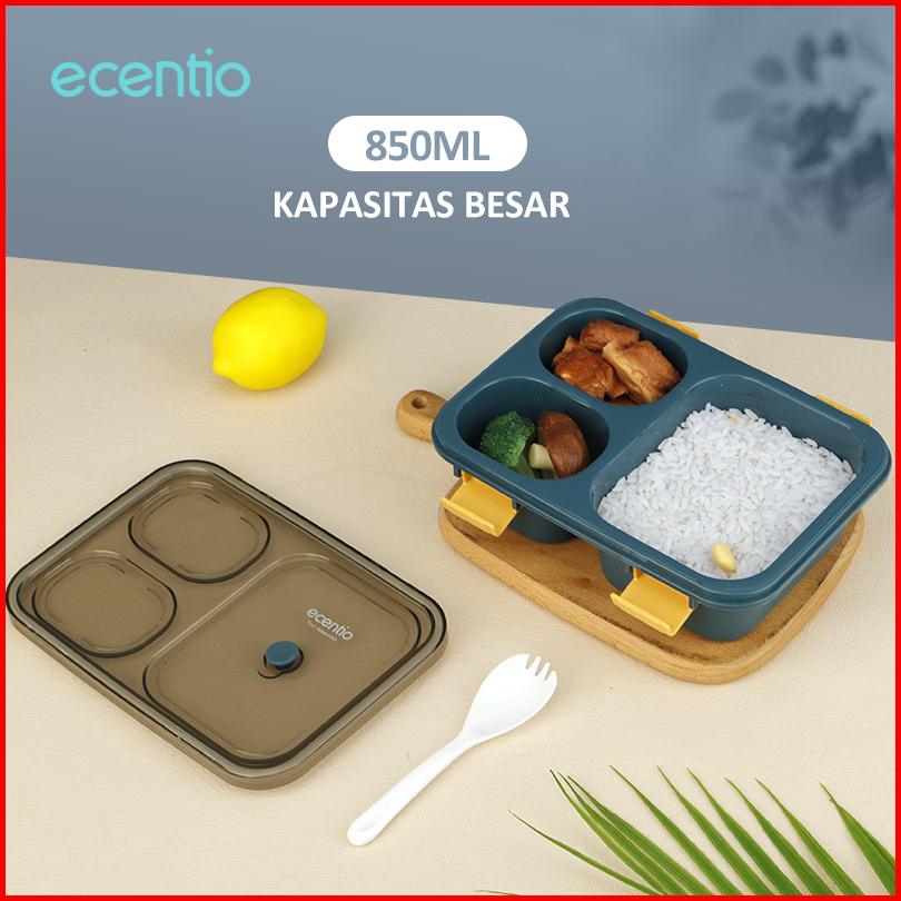 Ecentio Tempat Makan Lunch Box 3 Grid Disegel Kotak Makan Anak Anti Bocor 850ml 1100ml Tempat Makan Dan Sendok Free Bpa