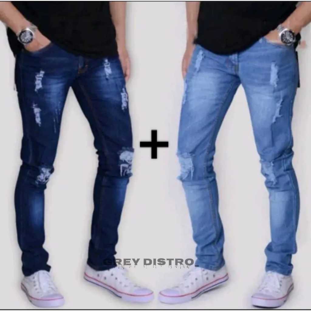 HEMAT Beli 1 dapat 2 / Celana Jeans Panjang Pria Sobek Lutut - Celana Pria Slimfitt Denim - Celana Pria Distro