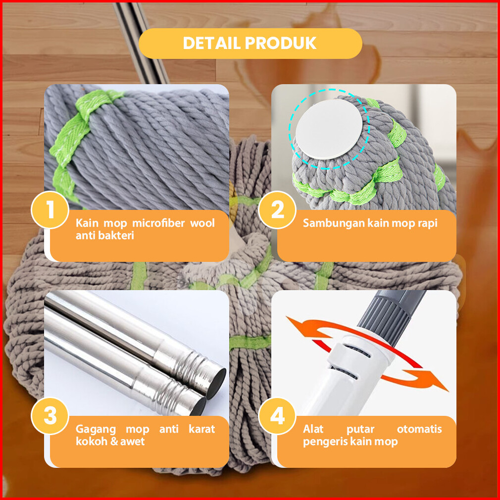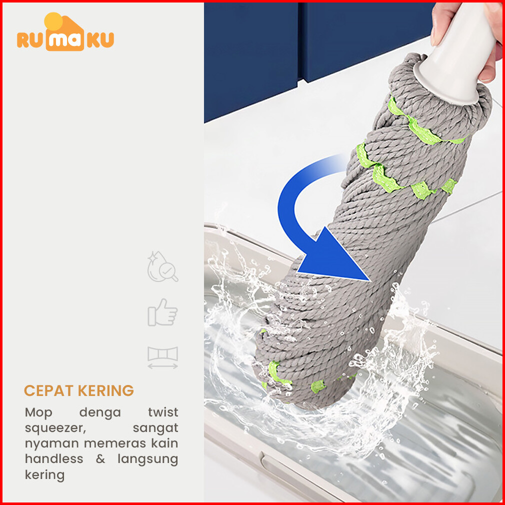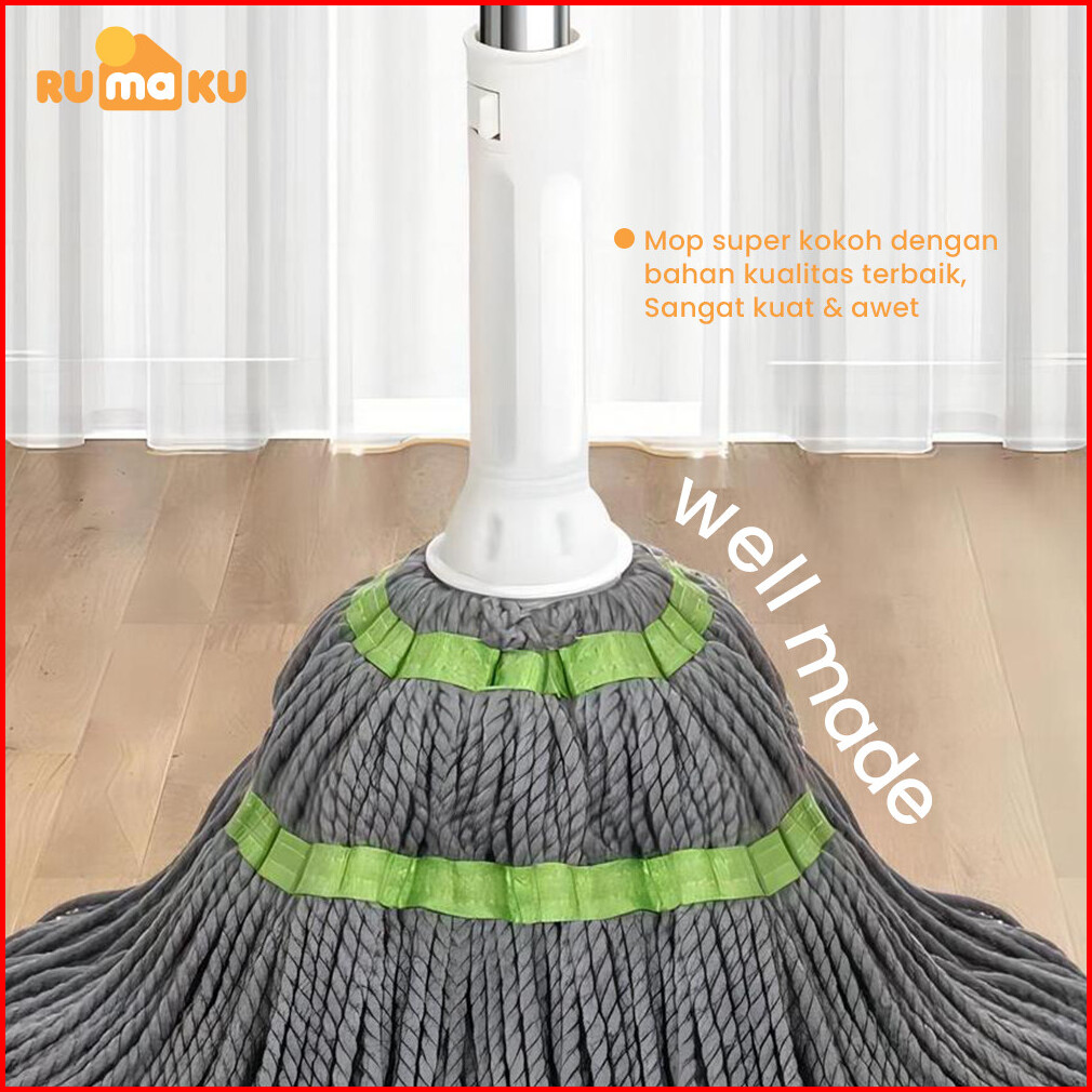 Rumaku Alat Pel Lantai Putar Praktis Twist Mop Pel Lantai Praktis Peras Tarik Otomatis Premium