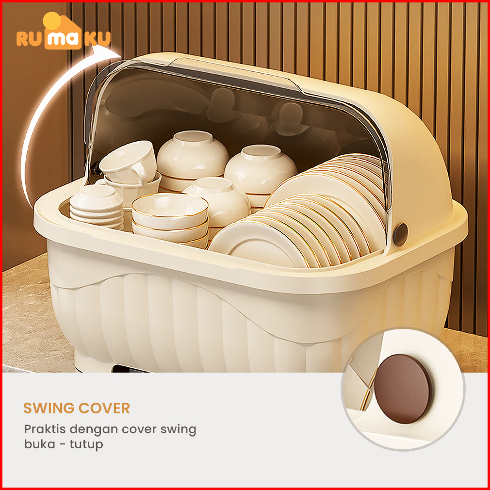 Rumaku Rak Piring Tertutup Minimalis Modern Serbaguna Dengan Tirisan Air Anti Debu