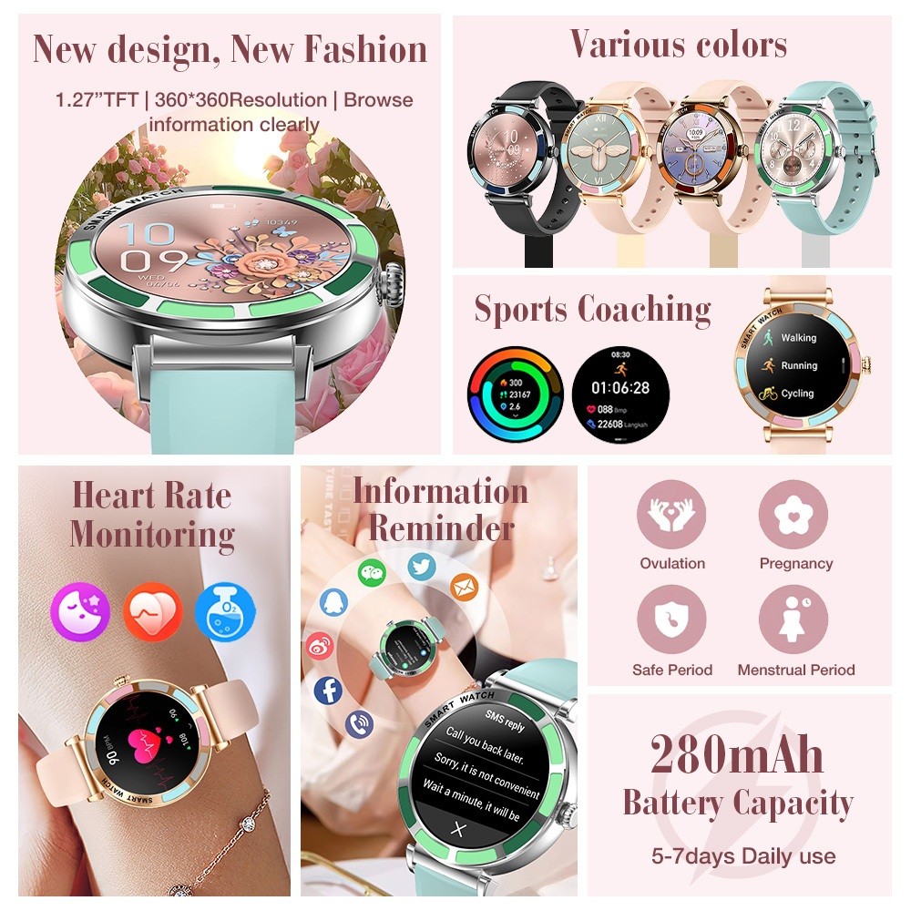 Aolon Lily R2 Jam Smartwatch Wanita 41mm Slim Bluetooth Call Custom Watch Face 150+ Sport Mode Smartwatch Reading WA