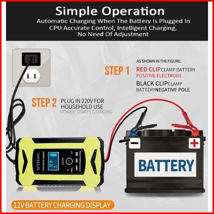 Vrtec Charger Aki 12v 6a Pulse Mobil Motor Intelligent Automatic Repair