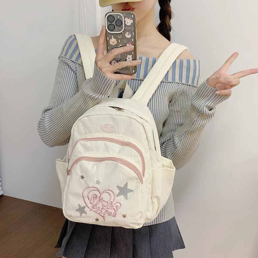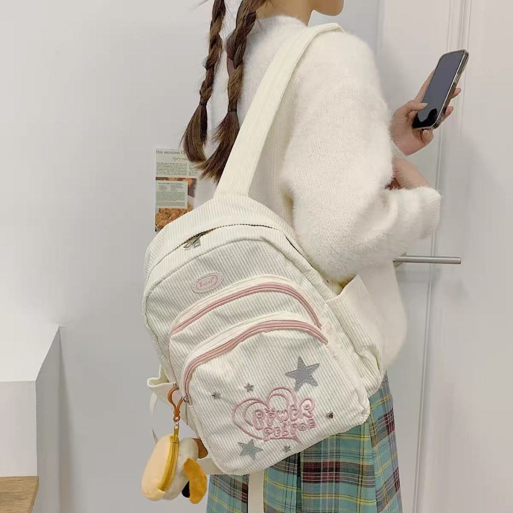 Della Ransel Corduroy / Tas Ransel Sekolahtas / Ransel Mini Y2k Putih Korduroi / Tas Sekolah korea import fashion Volume