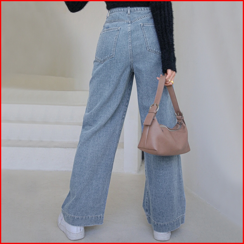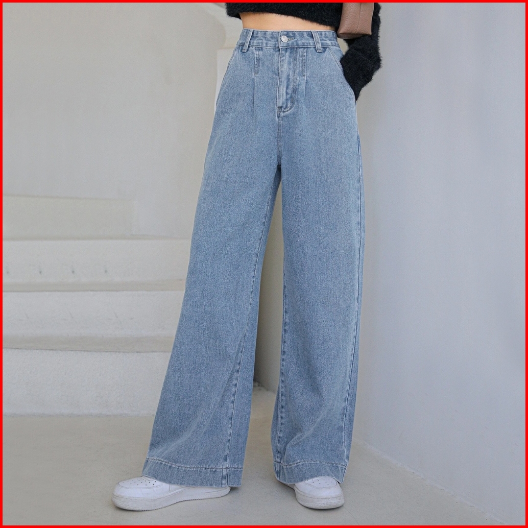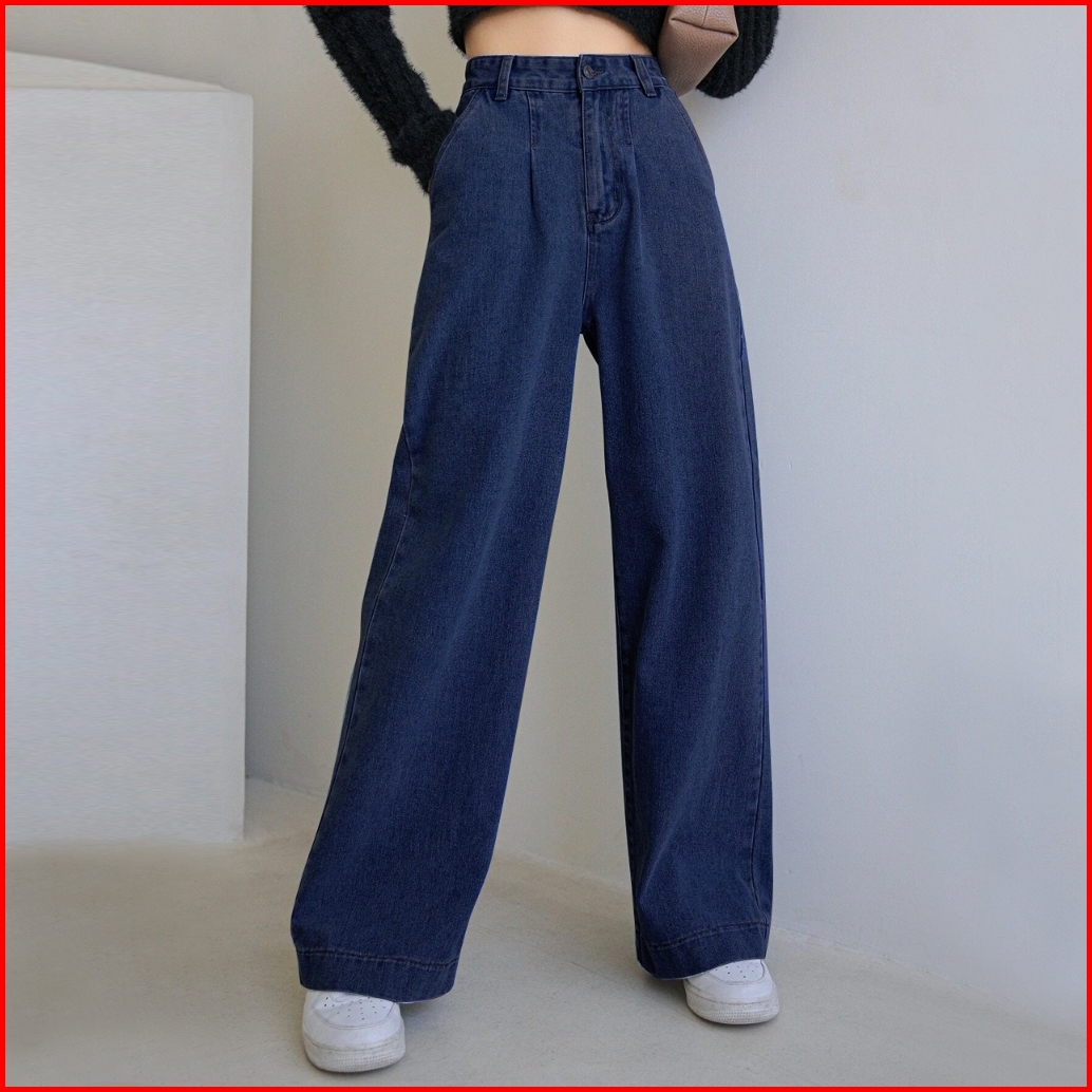 Baggy Jeans Wanita High Waisted Straight Solid Color Korean Style Celana Long Pants