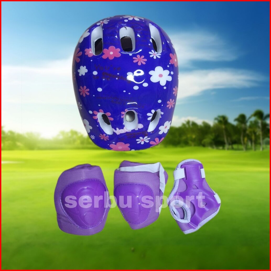 Helm Helmet Sepeda Sepatu Roda Anak Dan Deker Pelindung Satu Set Komplit