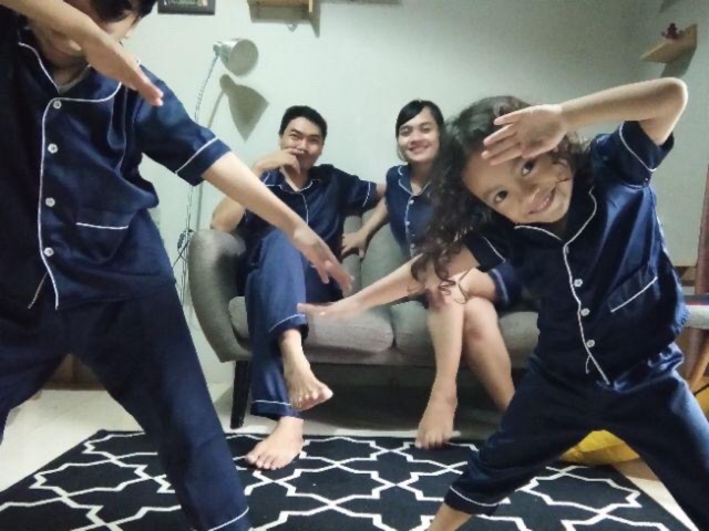 Piyama SATIN NAVY exclusive bisa couple pasangan mom and kids and family