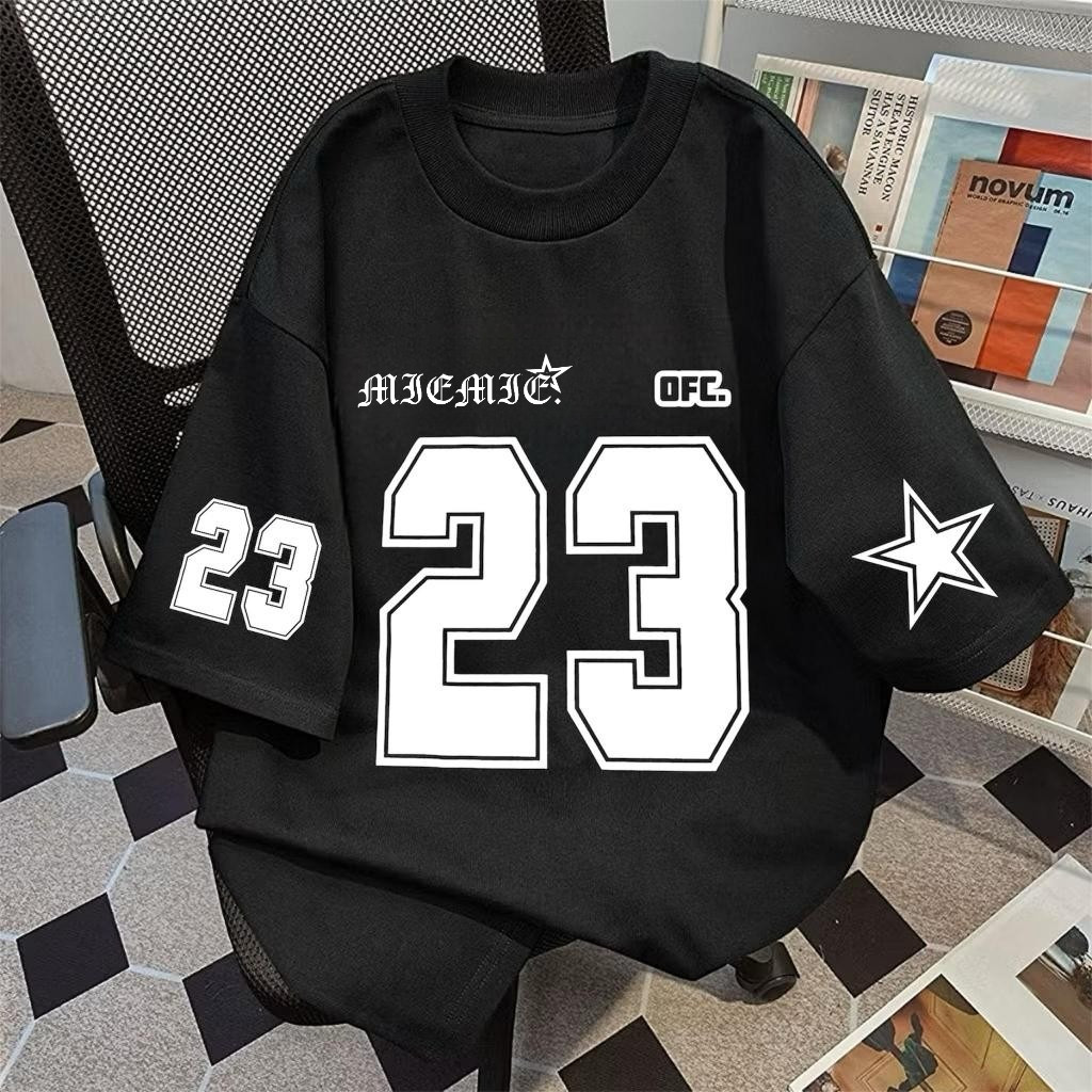 (Dikirim dalam 24 jam)MIEMIE. Kaos T-shirt Vintage No 23 Oversize Atasan Motif Baju Jersey Olahraga Nomor Angka 23