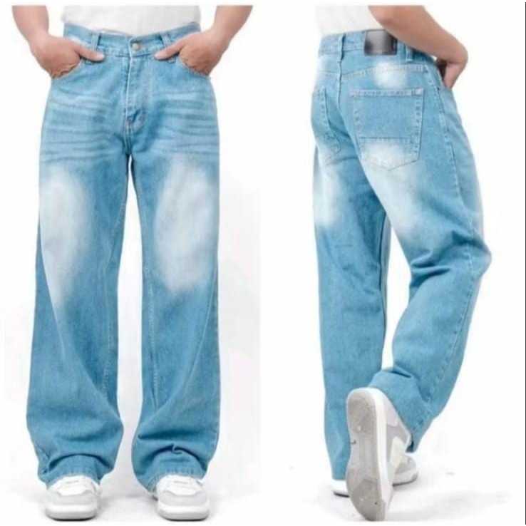 Celana Jeans Loose pants korean style oversize loose blue straight kulot boyfriend pria skena wisker gombrong panjang denim