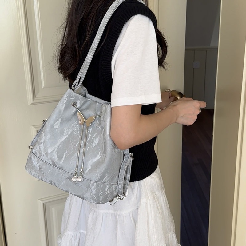 Tas Bahu Kulit Wanita Tas Gendong Cewek Rantai Serut Shoulder Versatile Bag Backpack Mini Serbaguna Murah Gratis Ongkir