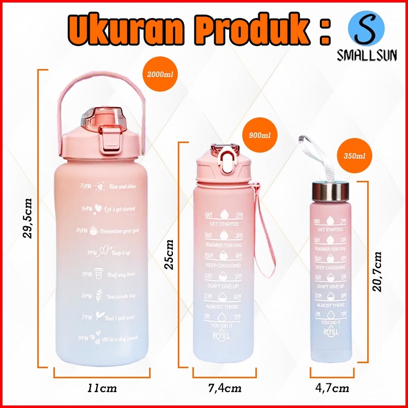 Ss Botol Viral Gradasi Warna 3in1 Best Quality 1 Set 2liter 900ml 350ml Free Stiker 2d 3d