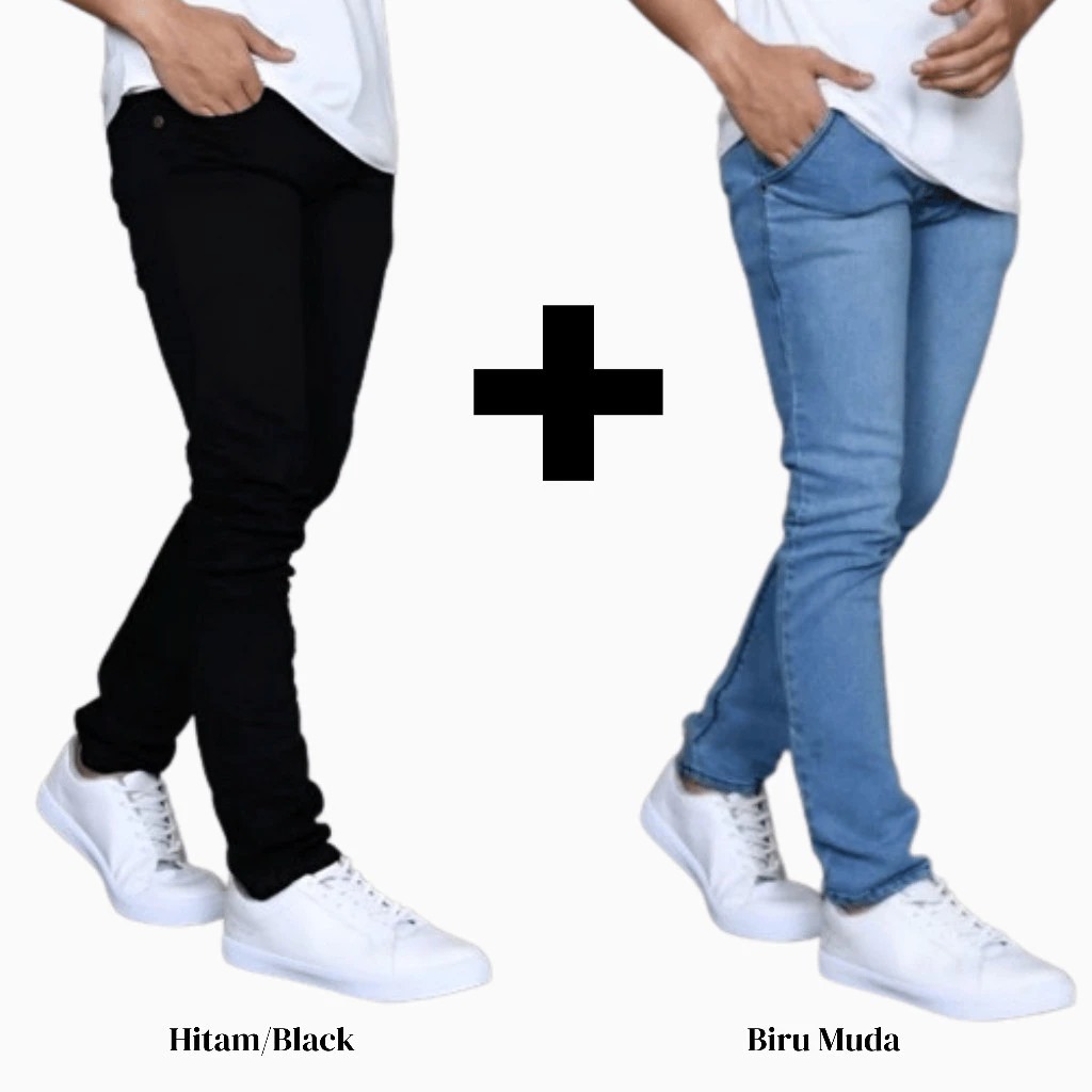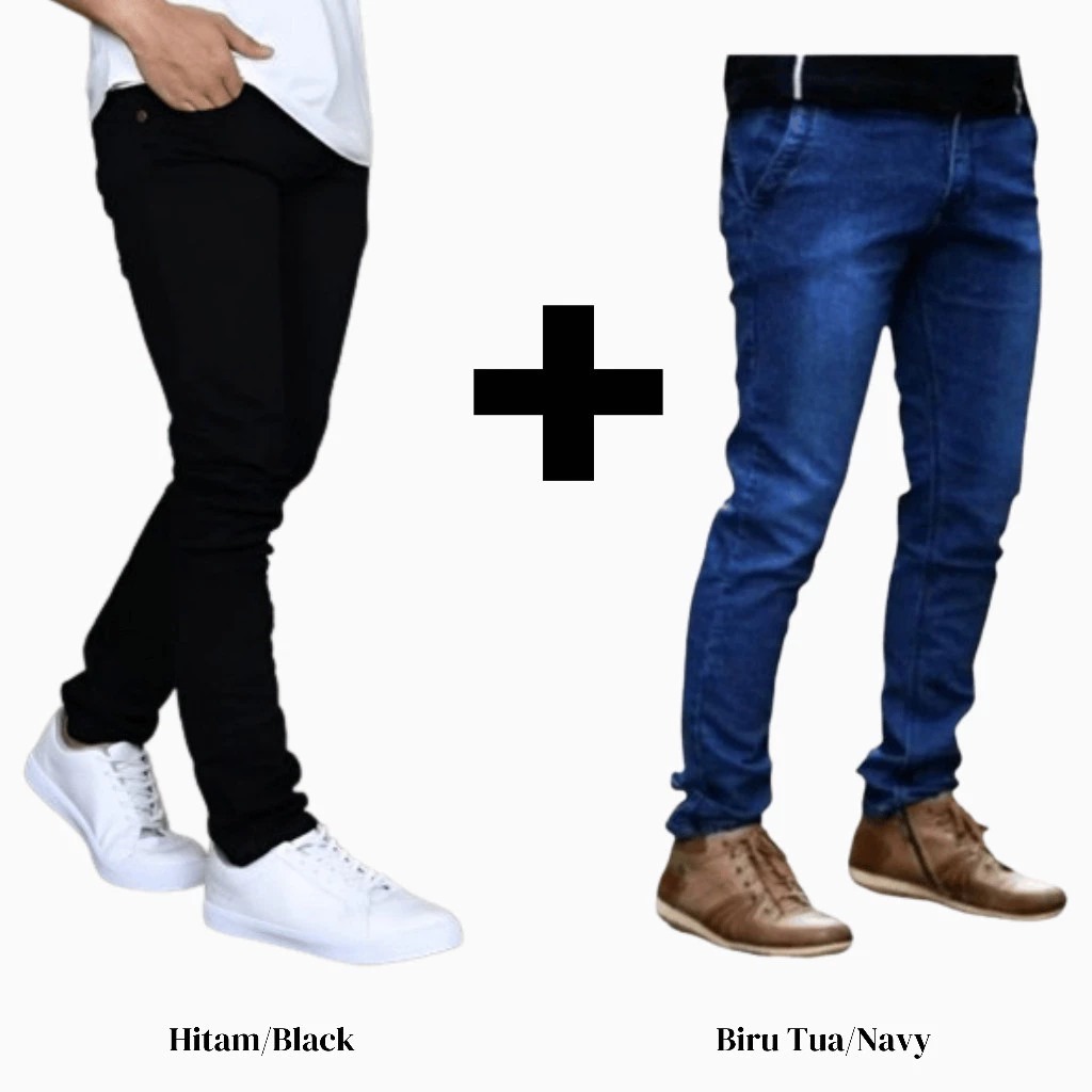 Celana Jeans Pria Slim Fit Terbaru | Celana Denim Cowok Kekinian PAKET HEMAT BELI 1 DAPAT 2 PCS}