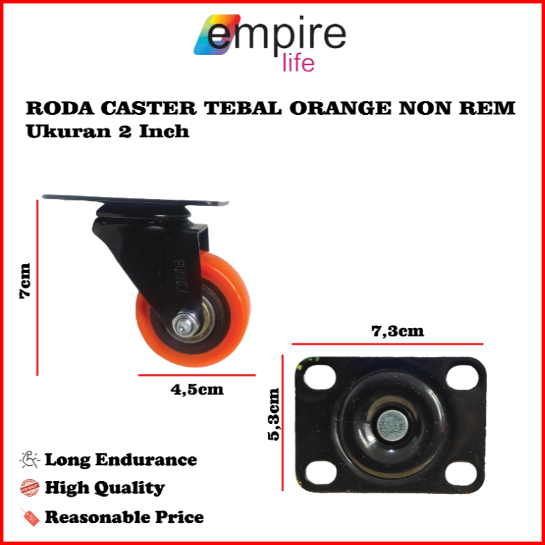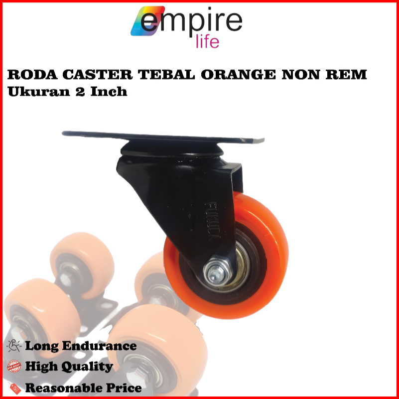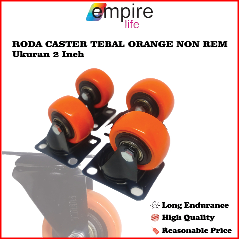 Roda Orange Caster Hidup 2 Inci Plat Tebal Tanpa Rem Roda Etalase 4 Pcs
