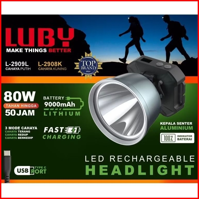 Senter Kepala Luby L2909 80w 2888 20w Luby 2909 Luby 80w Senter Charge Luby Senter Kepala Luby 2888 Senter Head Luby L 2