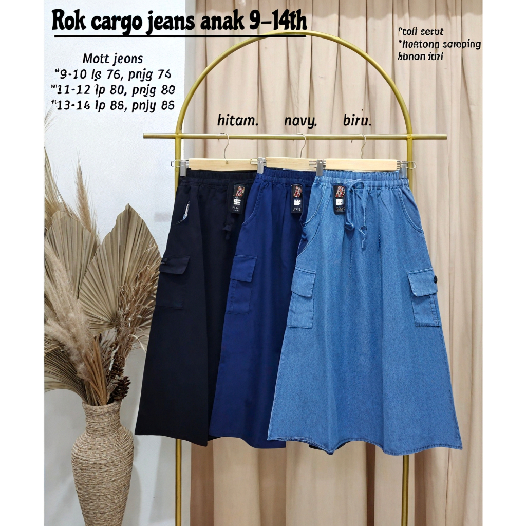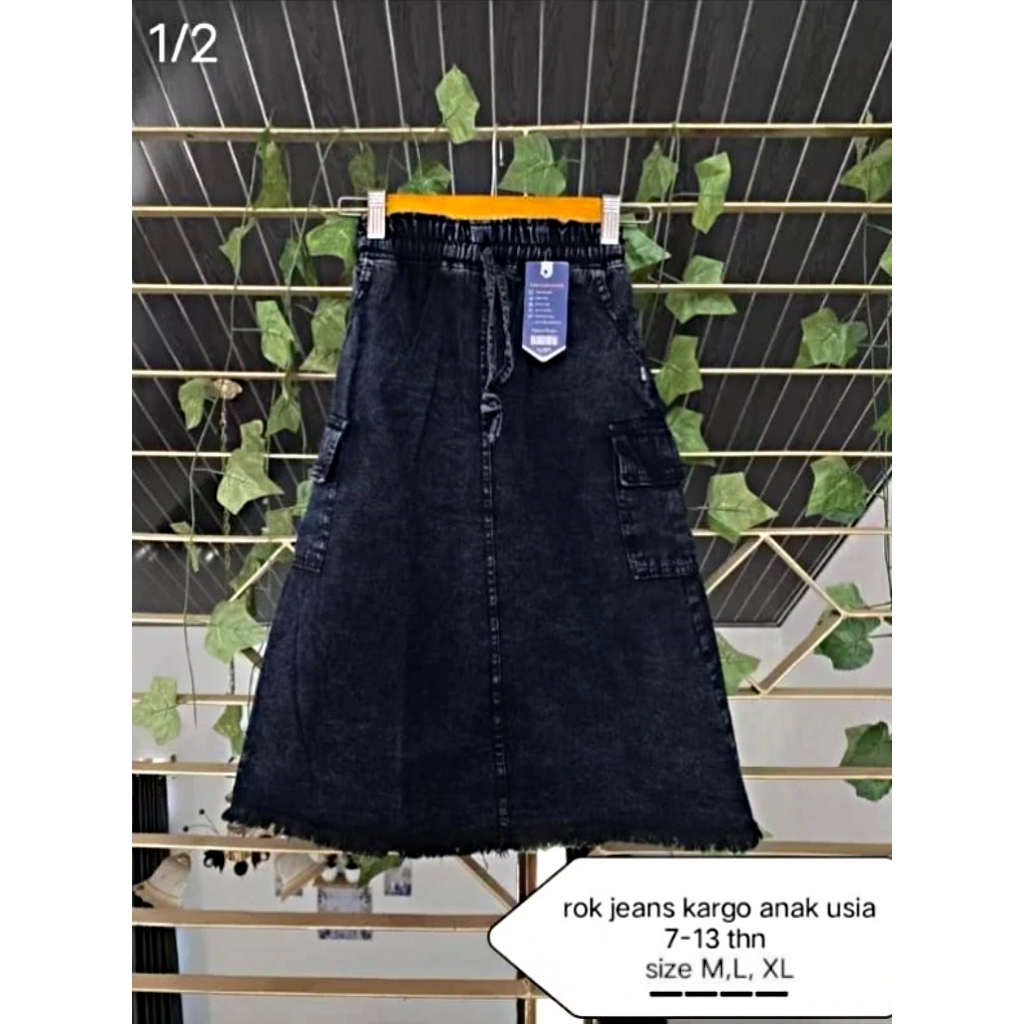 Rok Jiens Anak Rok Jeans Cargo Anak Perempuan 6-16 Tahun Rok Panjang Anak Cewe