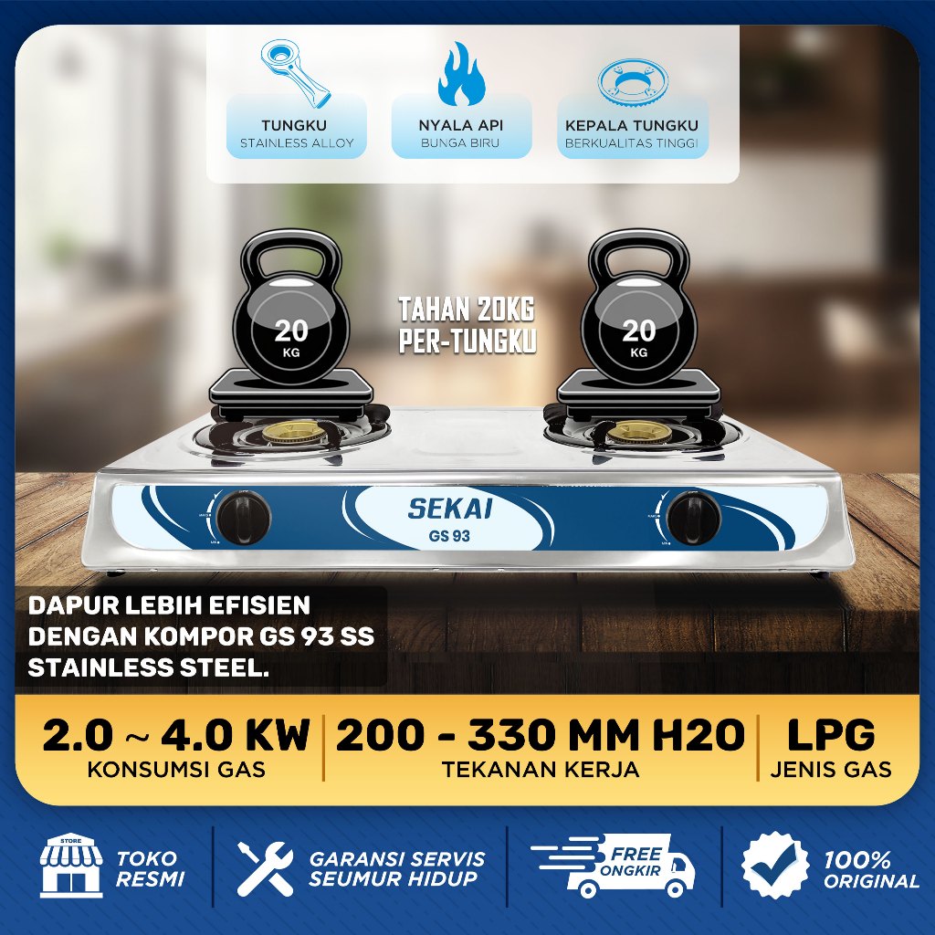 KOMPOR GAS 2 TUNGKU SEKAI STAINLESS STEEL ANTI LENGKET GS 51 GS 92ORIGINAL MURAH GARANSI RESMI