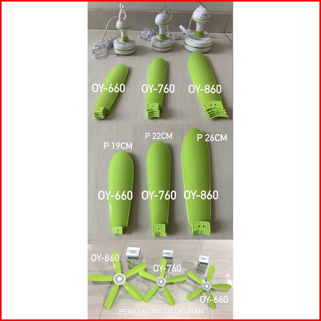 Kipas Angin Gantung Ouyashi Tipe Oy-660 Oy-760 Oy-860 Warna Hijau Baling Baling 5 Real Pic
