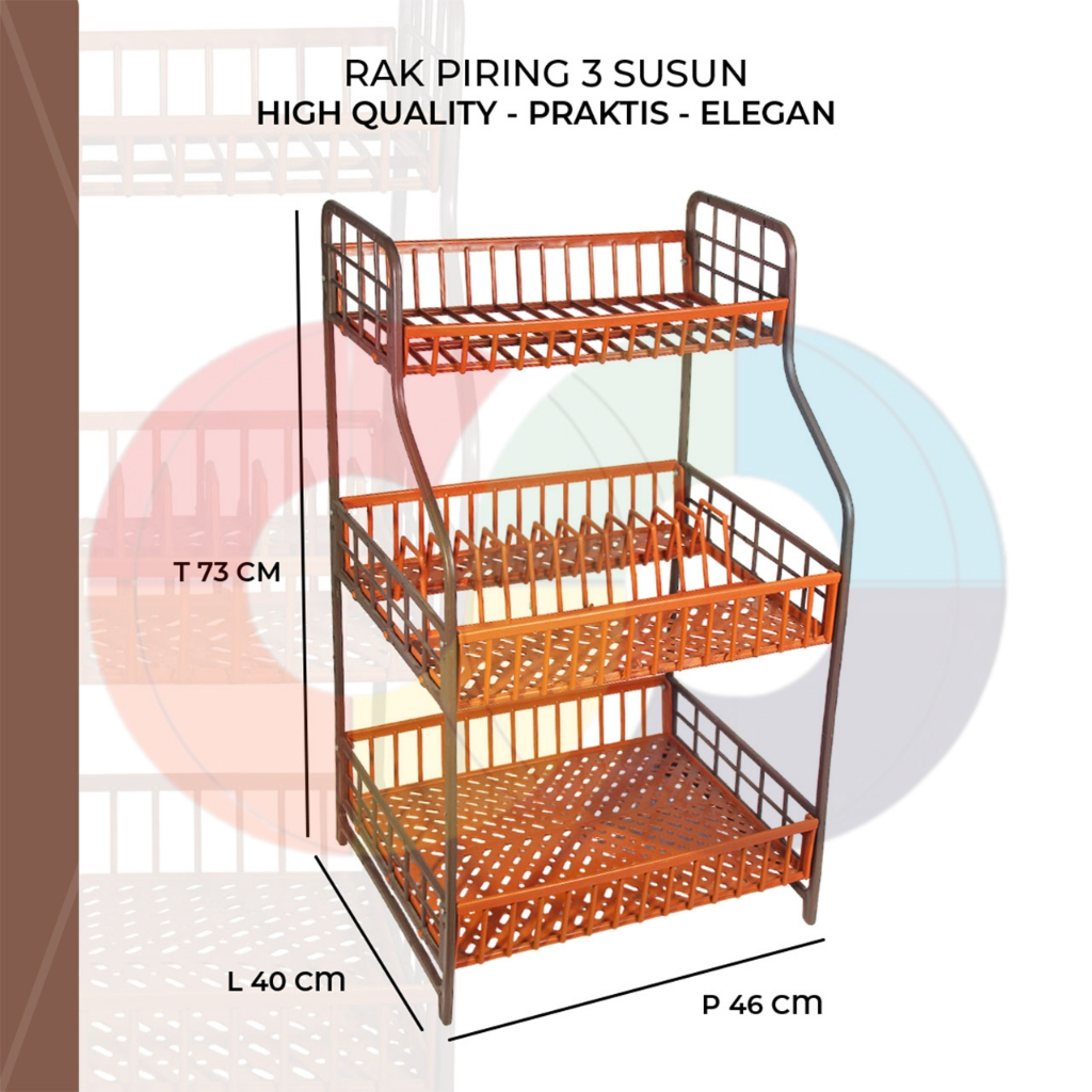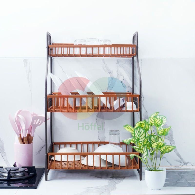 Rak Piring Plastik Susun 3 Coklat - Rak Dapur Serbaguna / Rak Wastafel / Rak Termurah