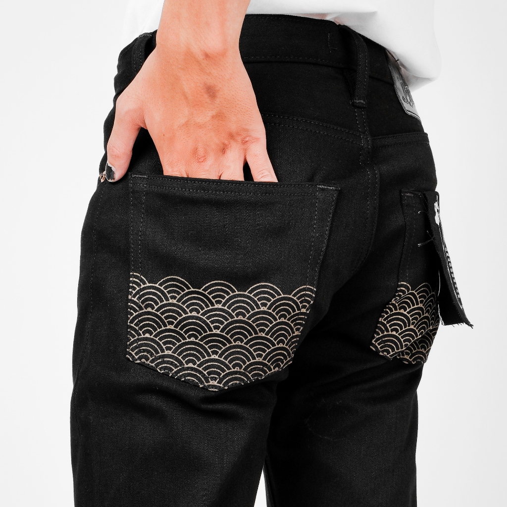 Bespoke Project - Celana Jeans pria hitam Black Raw denim