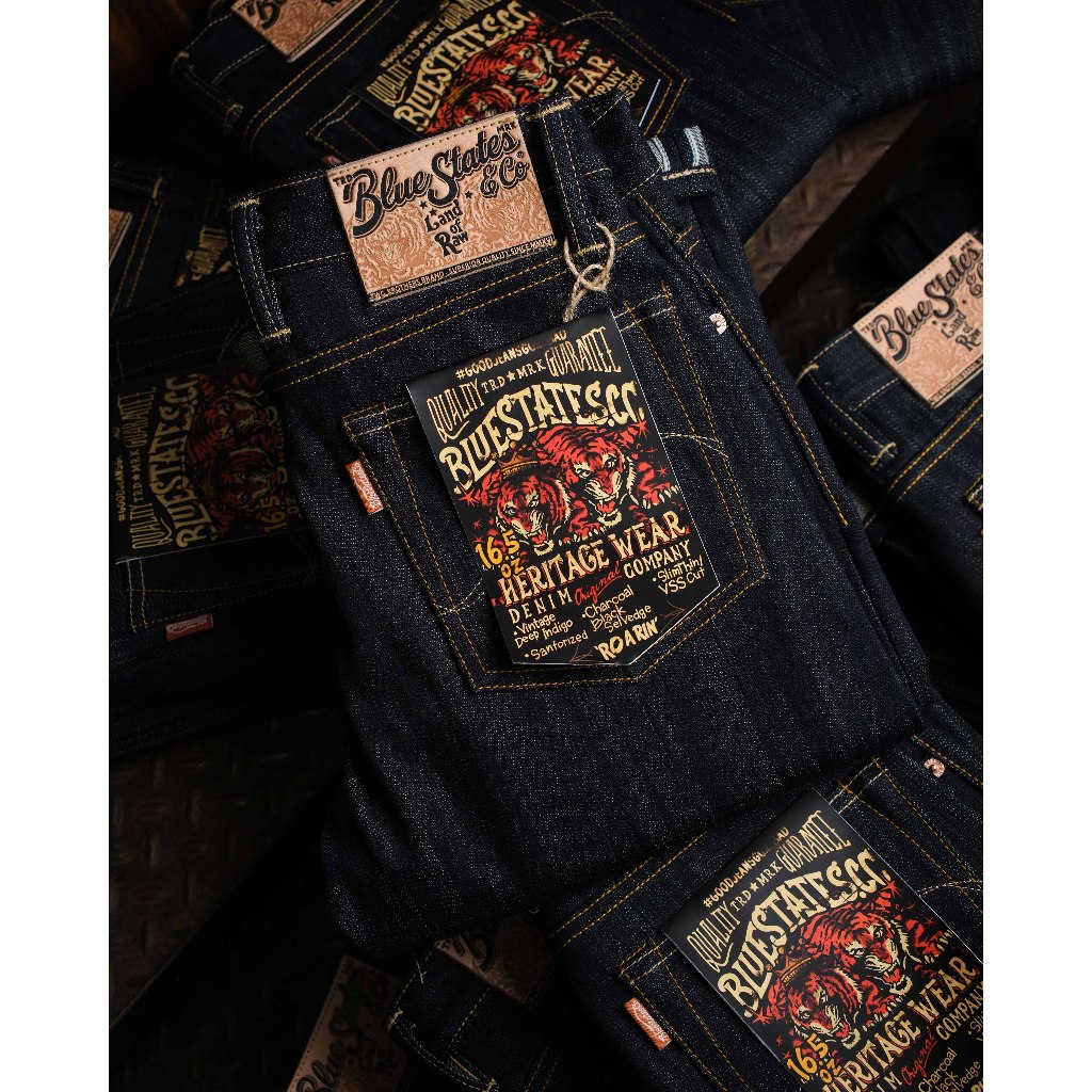 Bluesates Raw Selvedge Denim - Black Crown 16.5 oz Classic sanforized Vintage Deep Indigo selvedge Slim straight & slimf