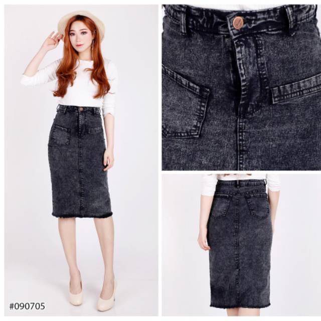 Rok Jeans Pendek Wanita (Bisa ) Size S - Big size | Rok Jeans Span 7/8 | Rok Span Jeans Pendek