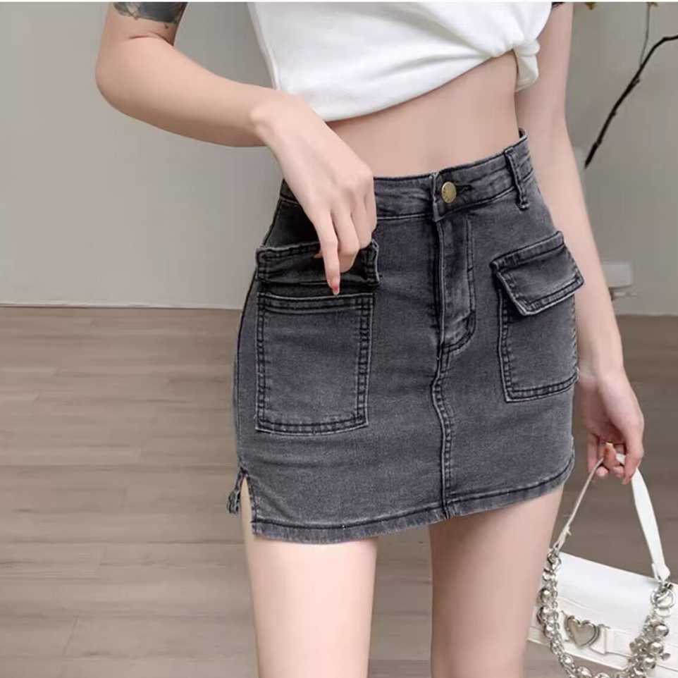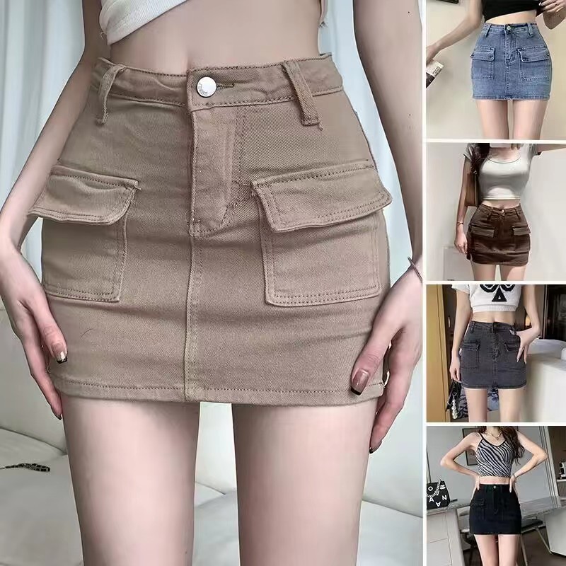 Rok Jeans Pendek Wanita 23-37 Rok pendek denim tas pinggul pinggang tinggi 5 warna seksi gadis seksi ukuran Plus