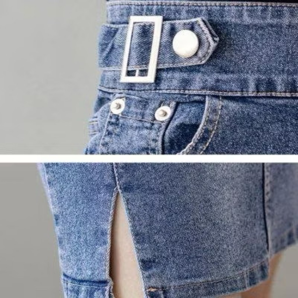 Rok Jeans Pendek Wanita ROK JEANS PENDEK STRETCH / ROK DENIM / BELAH SAMPING / PINGGANG KARET / M-L-XL