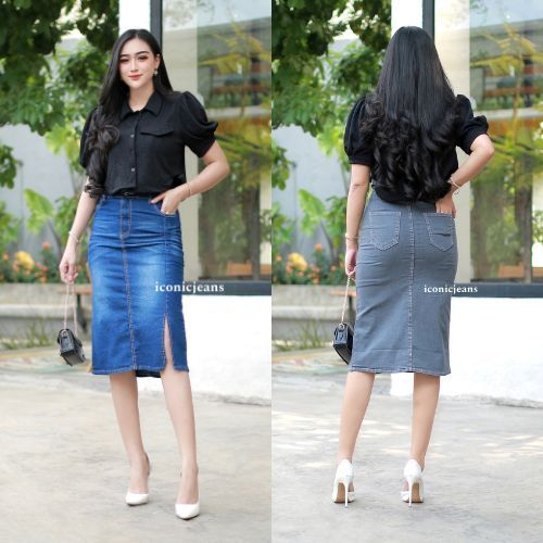 Rok Jeans Pendek Wanita iconicjeans - Nycta Jeans Skirt Rok Jeans Highwaist Stretch Pendek Belah Samping Pinggang Karet