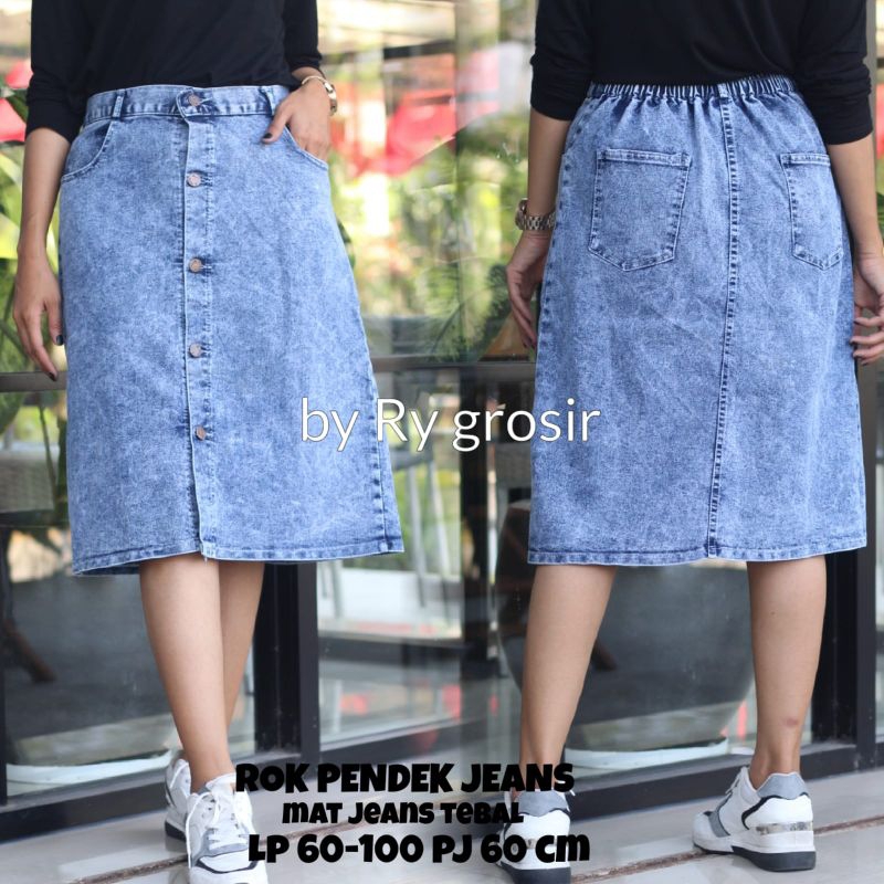 Rok Jeans Pendek Wanita Rok Pendek Jeans Tebal Kekinian Ukuran Standar & Jumbo