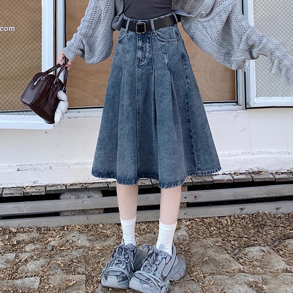 Rok Jeans Pendek Wanita |kekinian.ftory| Jeans rok wanita Rok Bawahan Wanita Denim Jeans Lipit Pendek Korea rok plisket
