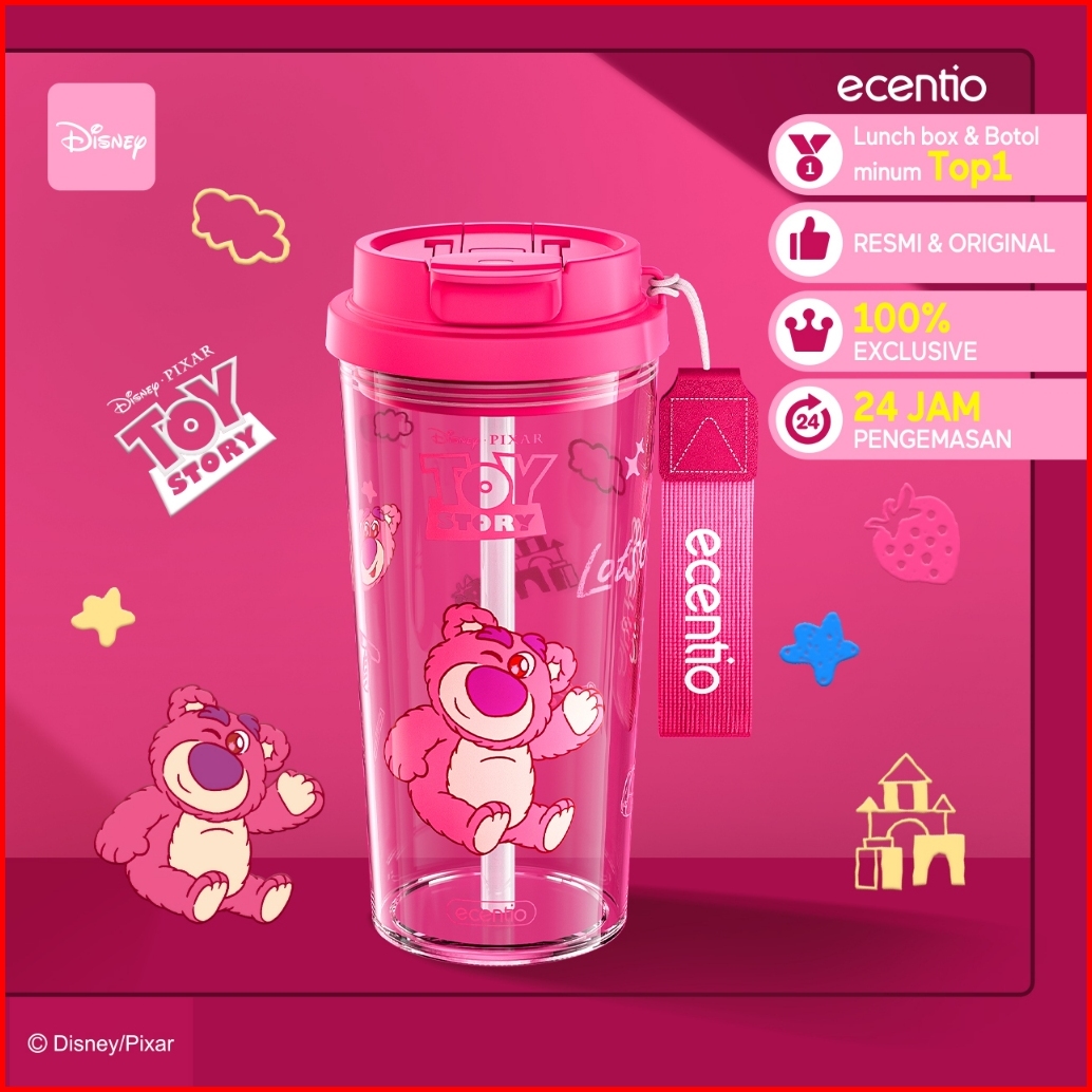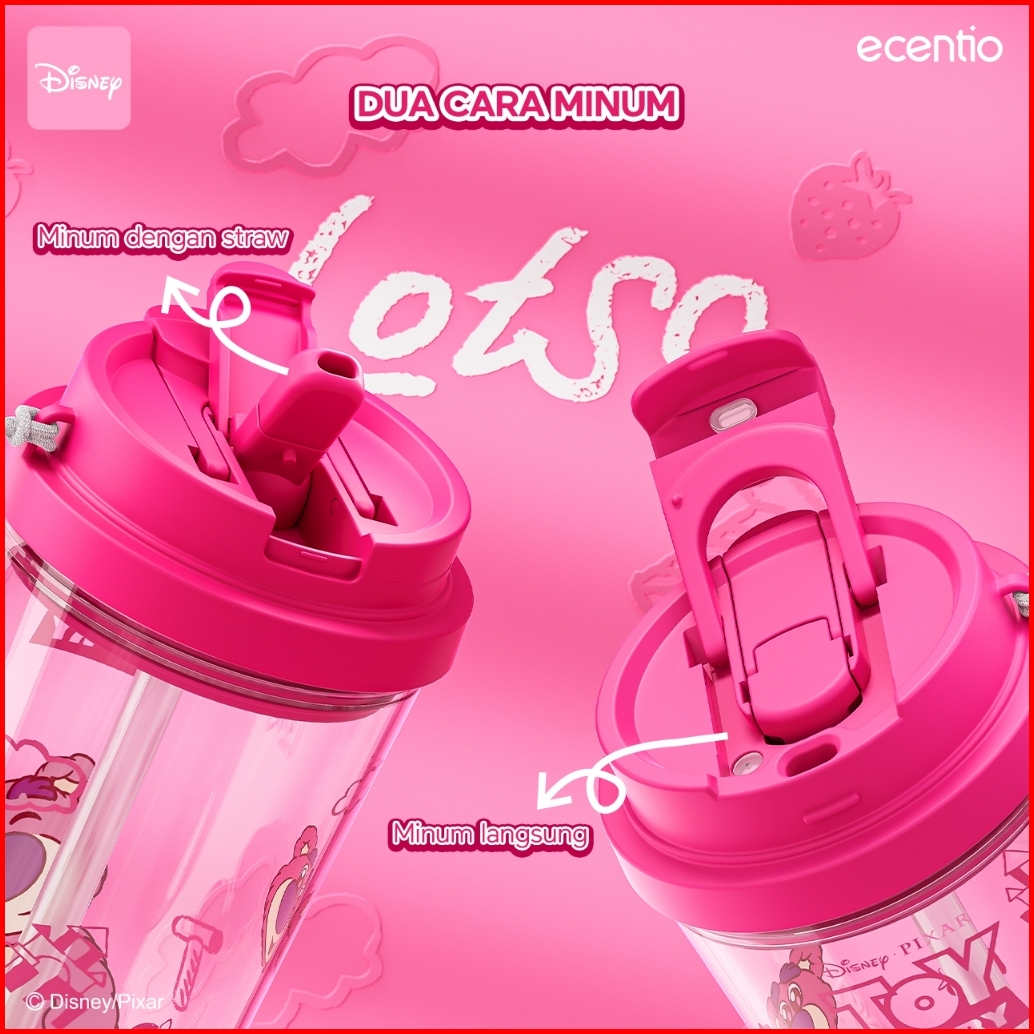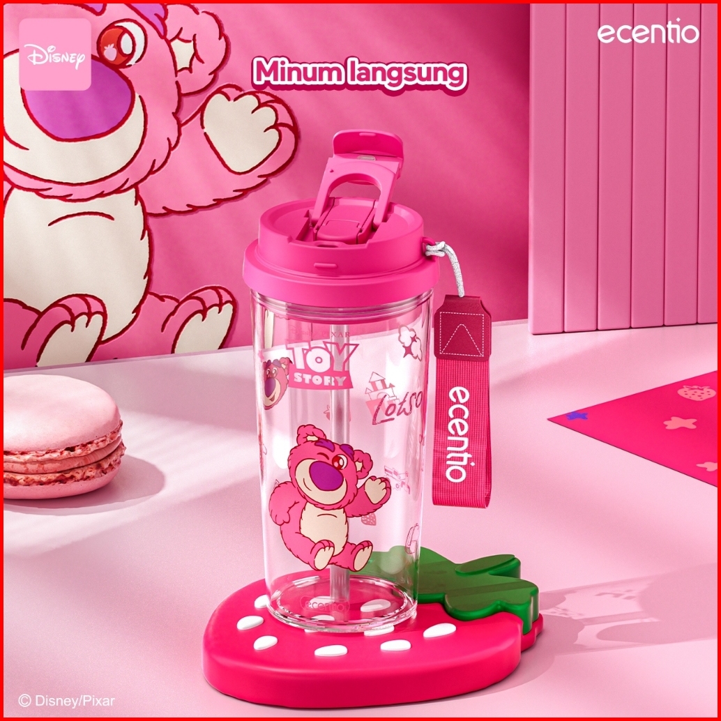 Grosirecentio 580ml Botol Minum Anak Disney Edition Lotso Strawberry Bear Pink With Straw Lifting Handle Portable Cangki