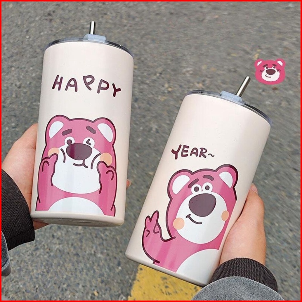Either.id - Termos Tumbler Minum Lotso Botol Minum Aesthetic 600ml Dengan Sedotan