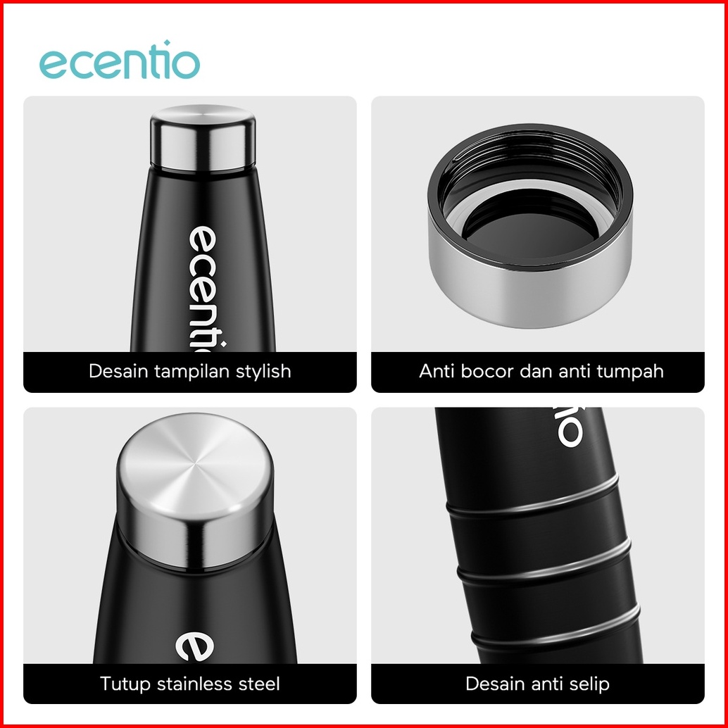 Ecentio Foodi Botol Air Minum Aluminium Tumbler Botol Minum Termos Mini Sport 750ml Tempat Minum Anak Gym Camping Botol