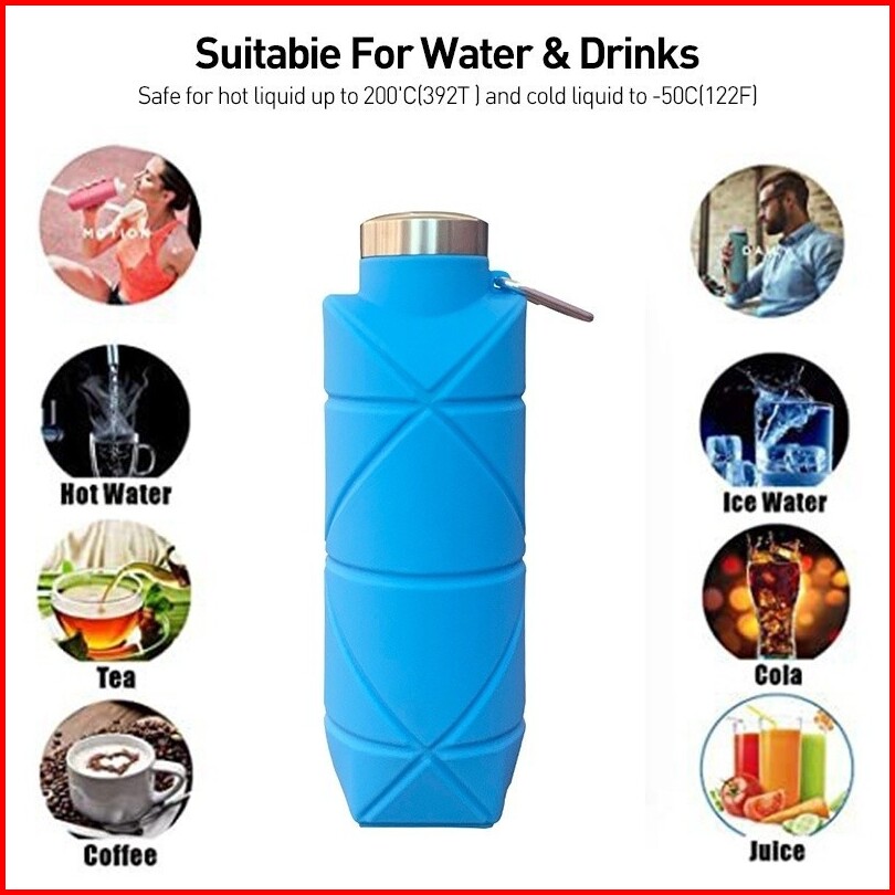 Dearday Foldable Portable Water Bottle 700ml Silicone Bottle Botol Perjalanan Bertahan Ringan Untuk Sport Kemping Gym